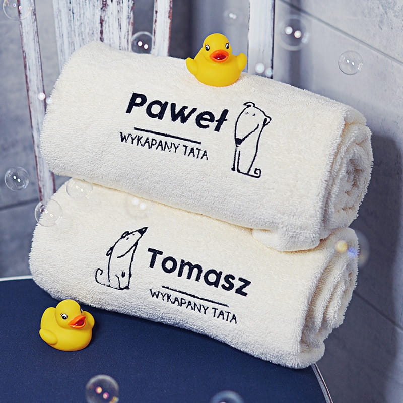 Ciekawą propozycją może się również okazać ręcznik personalizowany dla taty, który czuwa nad bezpieczeństwem kąpieli. Jak by nie patrzeć, kąpiel to wielkie przeżycie – okazja, by popływać z gumową kaczuszką, zrobić sobie brodę z piany czy irokeza z mokrych włosów… A po kąpieli trzeba wytrzeć się do sucha przed zapakowaniem w szlafrok. Dlatego ręcznik to świetny pomysł na prezent dla młodego taty.
