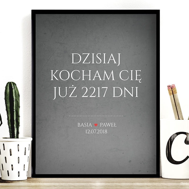 Ścienne dekoracje powinny być nie tylko ładne, ozdobne, ale też osobiste… I trudno chyba o coś bardziej osobistego niż plakat personalizowany 31x41 cm PREZENT NA ROCZNICĘ. To znakomity prezent dla Pawła, na którym wprost nie mogło zabraknąć imion zakochanej pary, a także najważniejszej jak dotąd dla niej (i dla niego!) daty – początku związku czy dnia ślubu. Efektowny plakat z personalizacją stanie się niezwykle bliską sercu pamiątką!