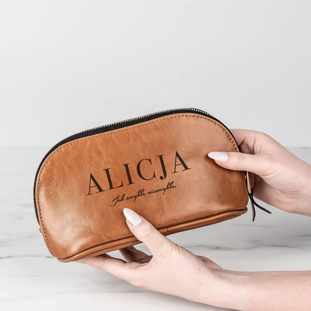 6) Skórzana kosmetyczka z imieniem PREZENT NA URODZINY DLA NIEJ