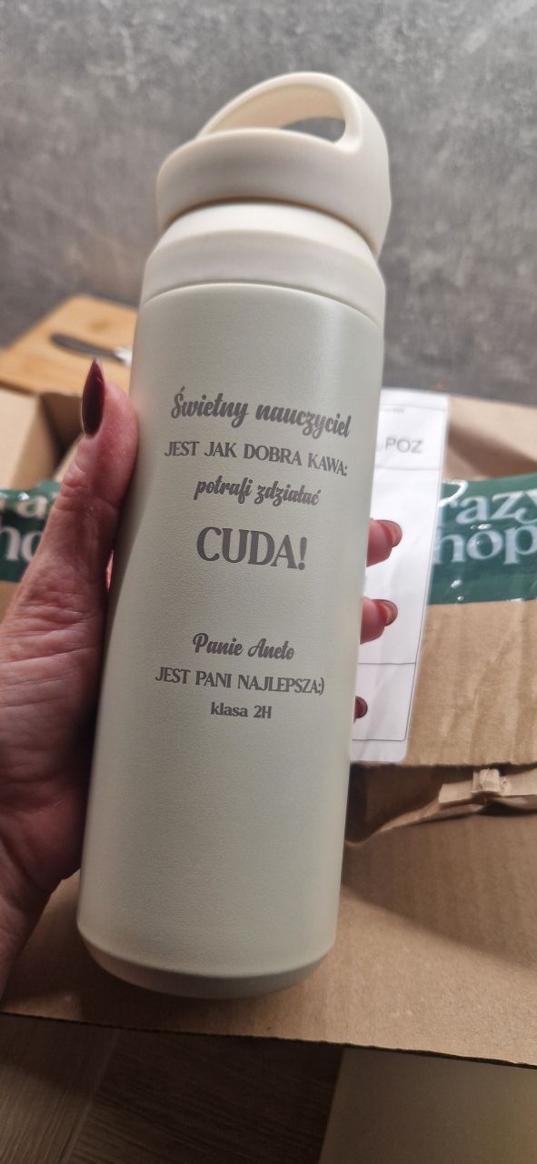 Termos bardzo dobrze wykonany pięknie się prezentuje.Nauczycielka zachwycona. Polecam serdecznie