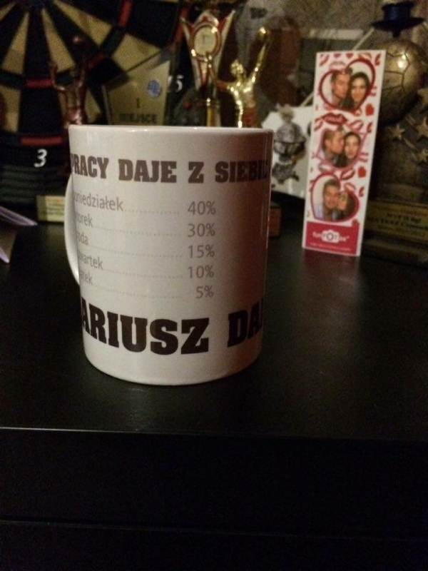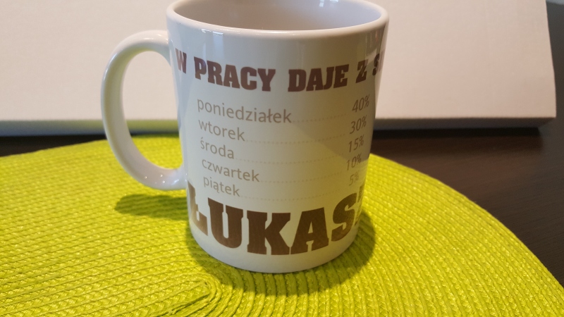 Jeżeli chcemy dawać z siebie 100 procent, ważne jest odpowiednie rozłożenie sił. Ten personalizowany śmieszny kubek do pracy z pewnością przypadnie do gustu wszystkim, którzy zdają sobie z tego sprawę i doskonale wiedzą jak to robić. Na wszelki wypadek dajemy jednak ściągę :)
