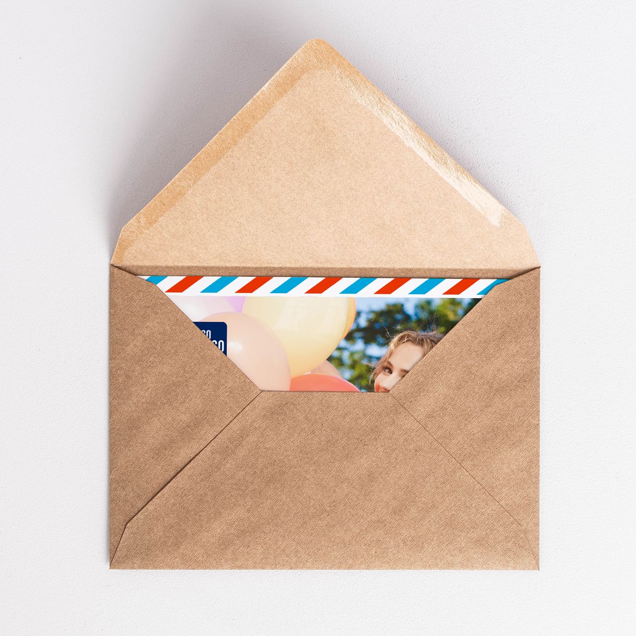 Personalizowana kartka urodzinowa ze zdjęciem LIST Z PODRÓŻY to kartka idealna, by złożyć życzenia urodzinowe, imieninowe czy po prostu przesłać komuś kartkę, by okazać, że się o tej osobie pamięta. Kartkę można spersonalizować dopasowując do różnych okazji. Można na niej umieścić zdjęcie oraz dostosowane napisy. Prezentowana personalizowana kartka urodzinowa ze zdjęciem to doskonały upominek lub dodatek do prezentu dla miłośnika podróży czy dla marzyciela.