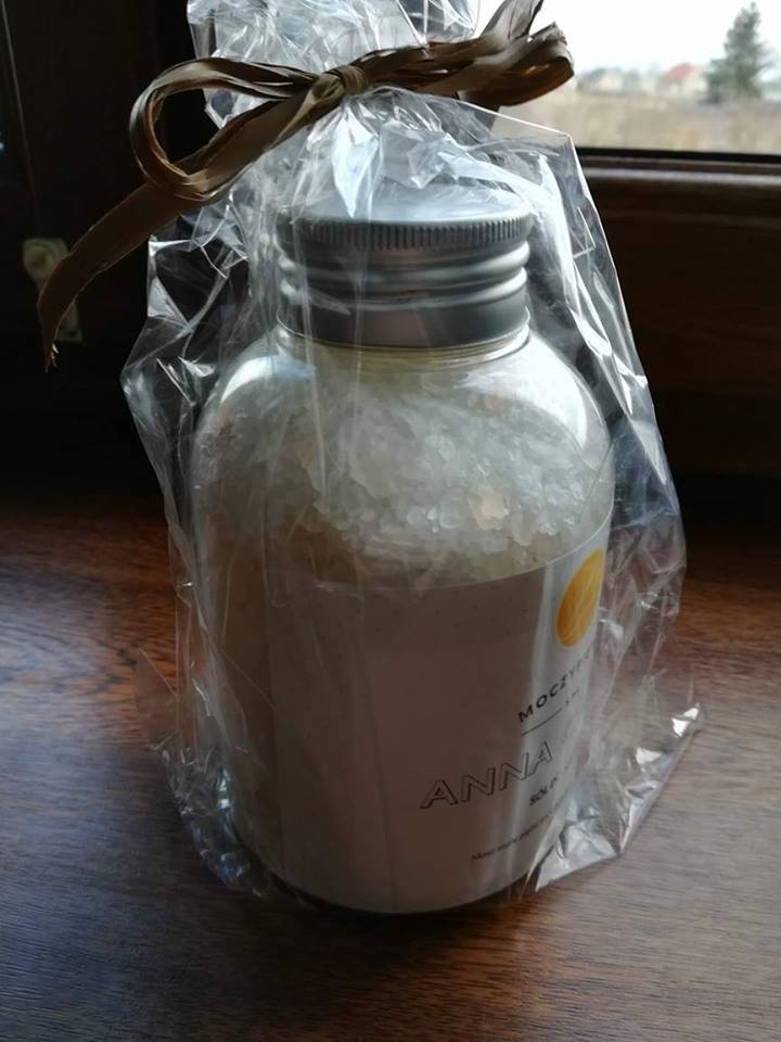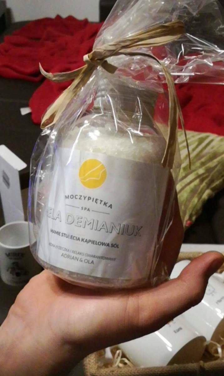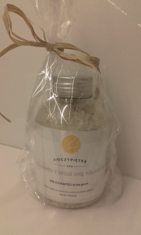 Personalizowana sól do kąpieli MOCZYPIĘTKA to świetny prezent dla żony na dzień kobiet.