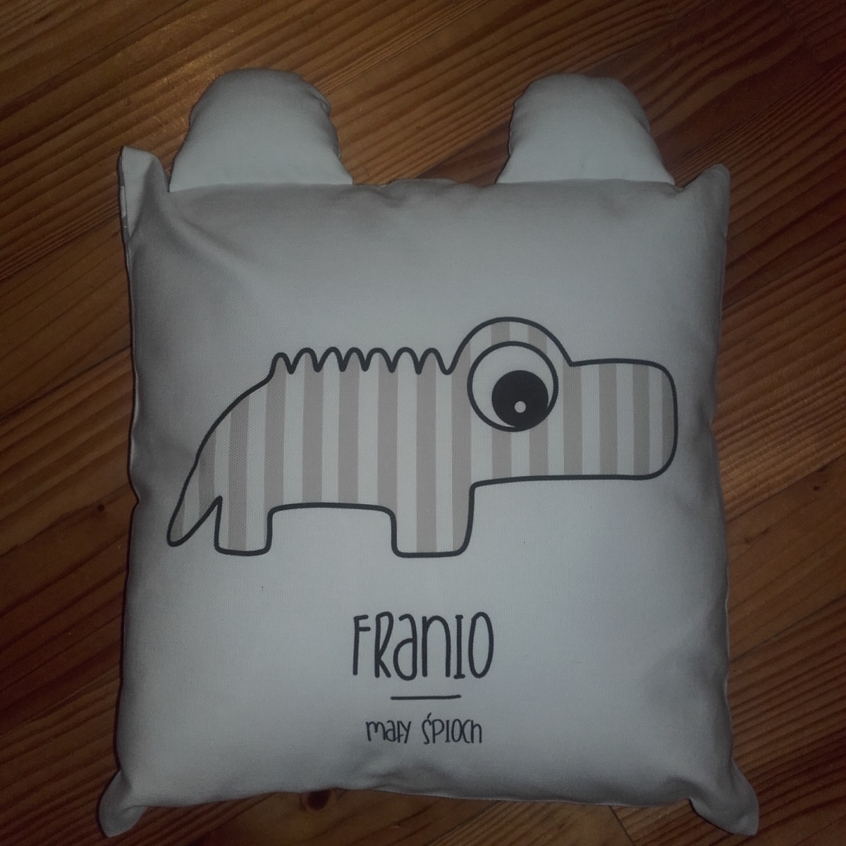 Urocza poduszka z uszami to propozycja na wyjątkowy prezent z imieniem dla dziecka na różne okazje. Czy pasiasty krokodylek na środku poduchy to przypadek? Ależ skąd! Miłośnicy natury i zjawisk w przyrodzie twierdzą, że krokodyle zawsze czuwają. Nawet ich sen odbywa się na tak zwanej ,,czujce, a jedno oko pozostaje niedomknięte. Ale chwileczkę! Czy my na pewno mówimy teraz o krokodylach, czy też o maluchach, które śpią lekkim snem? Wystarczy jeden szelest, pukanie do drzwi, a nawet mrugnięcie okiem, a koniec drzemki jest bliski. Poduszka z uszami to milusi prezent z imieniem dla dziecka, któremu z pewnością spodoba się nowy przyjaciel.