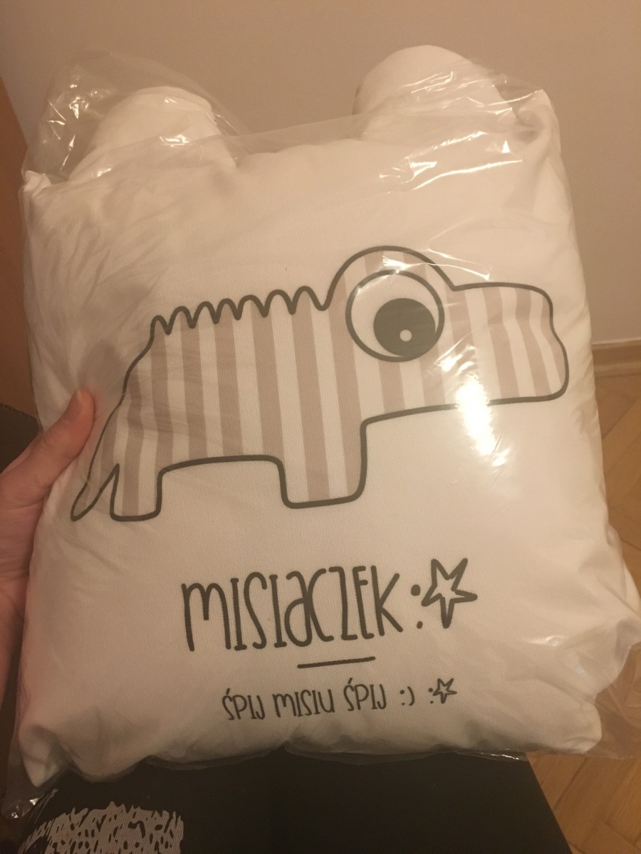 Poduszka zamawiana już po raz drugi. Jedna gwiazdka mniej za font, który nie pasował idealnie do słowa, które chciałam napisać na poduszce.