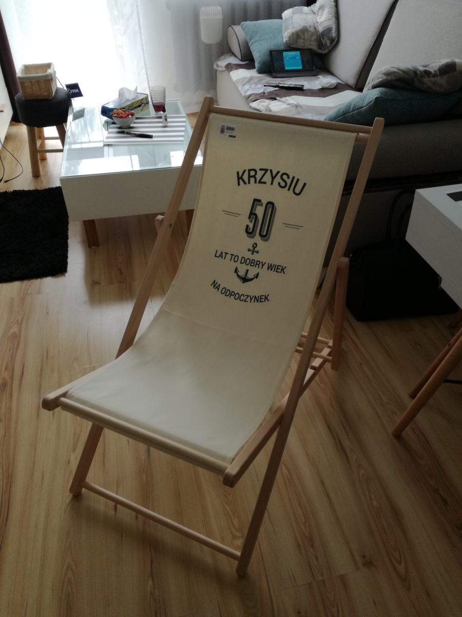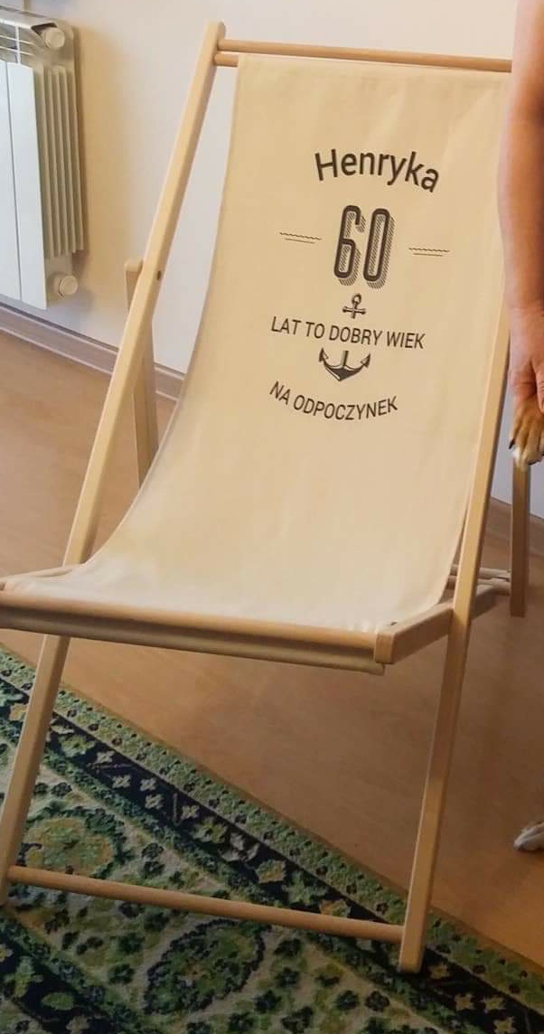 Leżak personalizowany DOBRY WIEK to świetny pomysł na oryginalny prezent na urodziny.