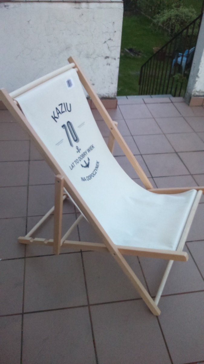 Składany drewniany leżak z bawełnianym pokryciem prezentuje się naprawdę stylowo. Całość dopełnia nadruk jasno wskazujący właściciela wypoczynkowego leżaka. Jest to przedmiot poręczy i wygodny w użytkowaniu. To właśnie dlatego obdarowana osoba może zabrać go dosłownie wszędzie: na wycieczkę za miasto, na działkę, na ryby czy plażę. Dodatkowo nasz leżak personalizowany to stabilna konstrukcja, która udźwignie do 120 kg. Właściciel upominku bez względu na gabaryty może w spokoju i bezpieczeństwie cieszyć się chwilą relaksu i odprężenia.