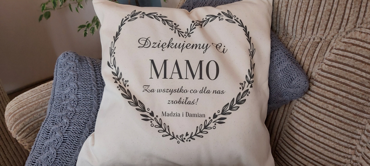 Poduszka z nadrukiem to cudowny pomysł na personalizowany prezent dla mamy na Dzień Mamy, na urodziny lub podziękowanie ślubne dla rodzica.
