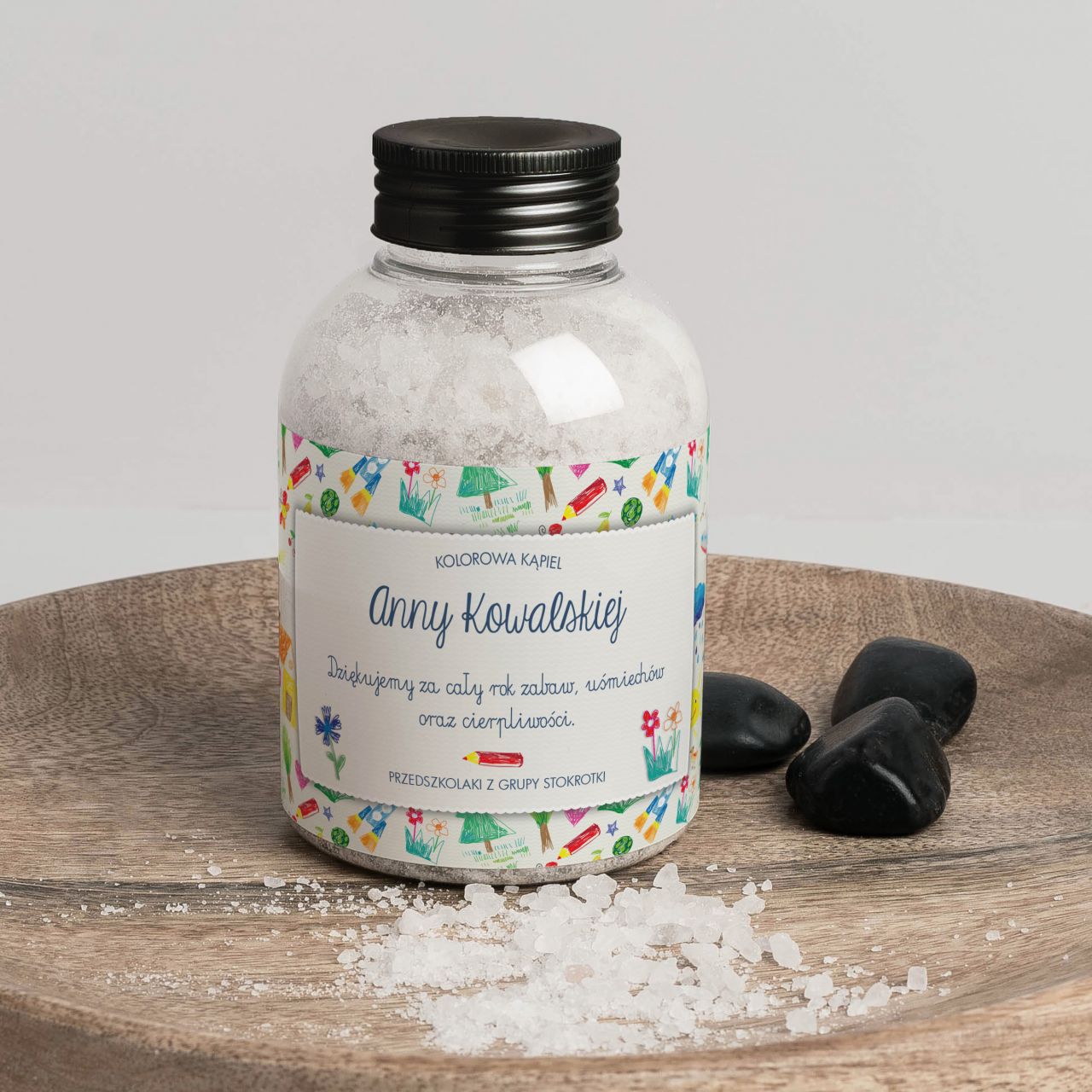 Sól do kąpieli to ładny prezent dla przedszkolanki na koniec roku.