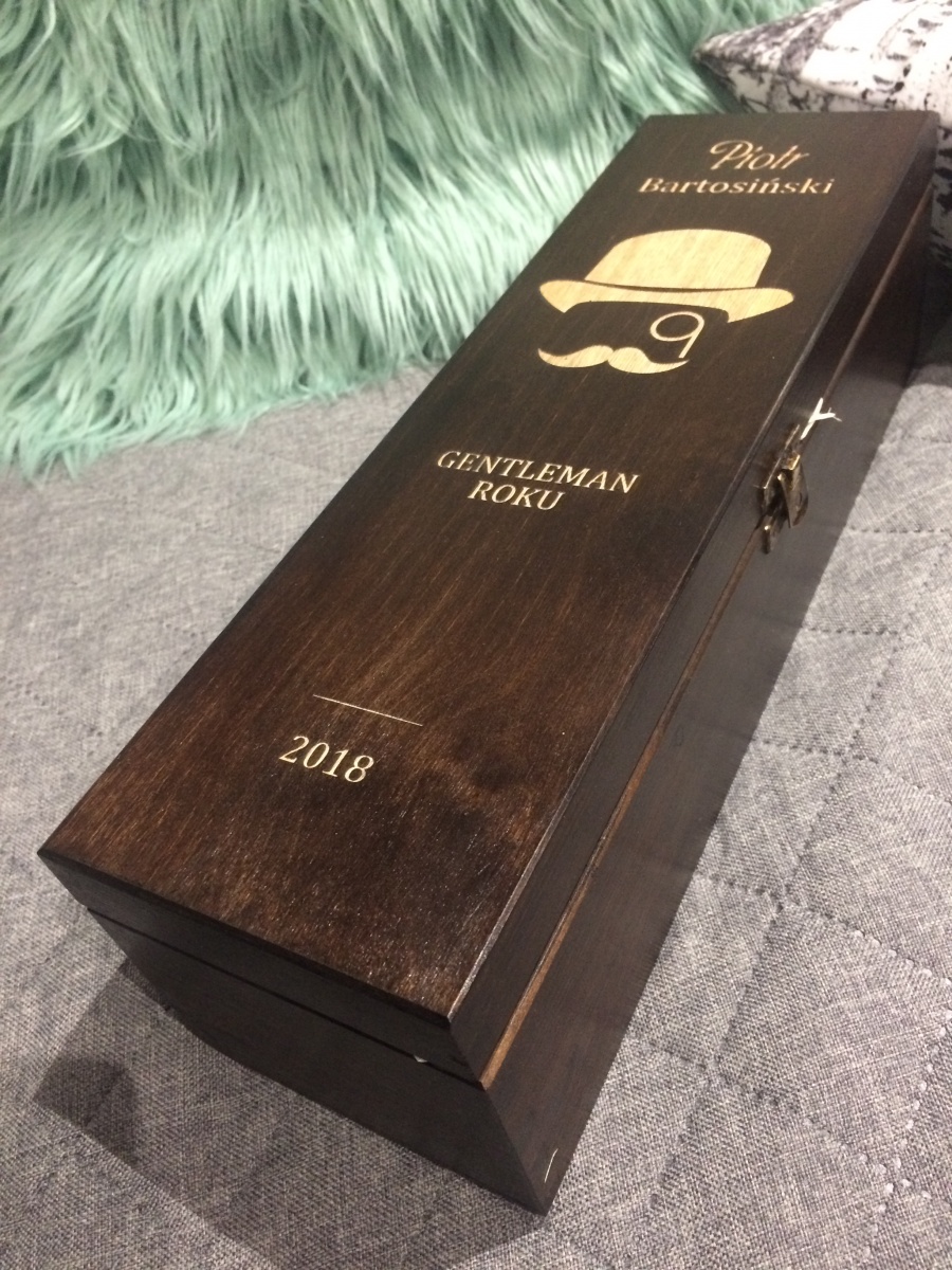 Kiedy wręczamy prezent dla męża na 20. rocznicę ślubu w postaci butelki dobrego trunku prawdziwemu dżentelmenowi, to powinniśmy wybrać do tego odpowiednie, eleganckie opakowanie na butelkę. Ekskluzywna skrzynka na wino lub whisky z wygrawerowanymi atrybutami klasycznego dżentelmena oraz z imieniem i życzeniami dla eleganta, z pewnością spodoba się każdemu Panu, który ceni sobie picie z klasą.