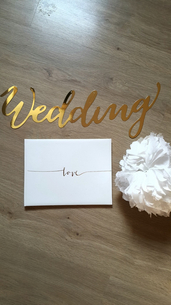 Księga gości LOVE to już tradycja. Rytuał, którego nie może zabraknąć na żadnej ceremonii ślubnej. Nie ma chyba nic piękniejszego od miejsca, które kryje w sobie życzenia od wszystkich bliskich nam osób. Zadbaliśmy o każdy najdrobniejszy element wykonania. Idealnie dobrany format kartek gwarantuje wygodę podczas robienia pamiątkowych wpisów przez uczestników wesela oraz łatwe przechowywanie przedmiotu na honorowej półce w salonie lub szafce. Księga gości LOVE to zaproszenie gości weselnych do podzielenia się szczerymi życzeniami i pozostawienia po sobie śladu w postaci podpisu.