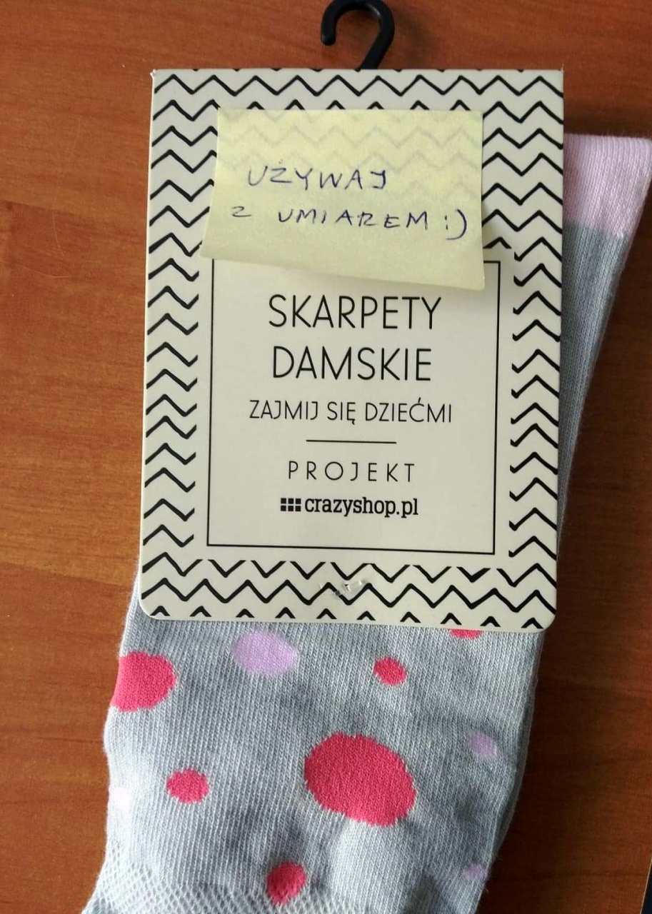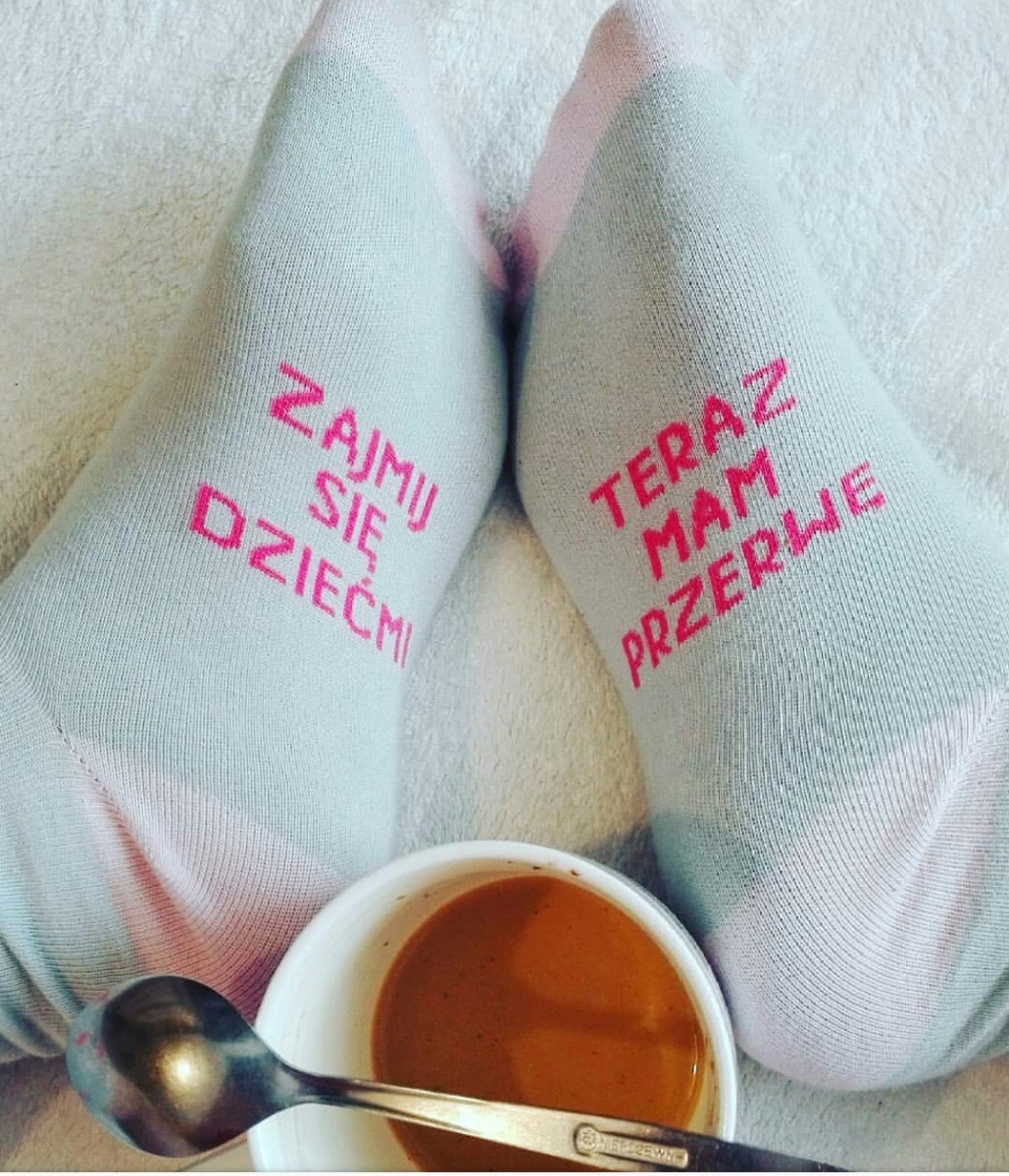 Szukasz zabawnego pomysłu na prezent dla świeżo upieczonej mamy, a może odbiorcą będzie doświadczony rodzic? Nie ważne, jaki staż mają mamy. One zawsze są zarobione i dlatego zasługują na relaks w ciągu dnia. Śmieszne skarpetki damskie ZAJMIJ SIĘ DZIEĆMI przychodzą na ratunek. W tym przypadku nie trzeba nic więcej dodawać. Wystarczy je założyć i czekać na szybki rozwój wydarzeń.