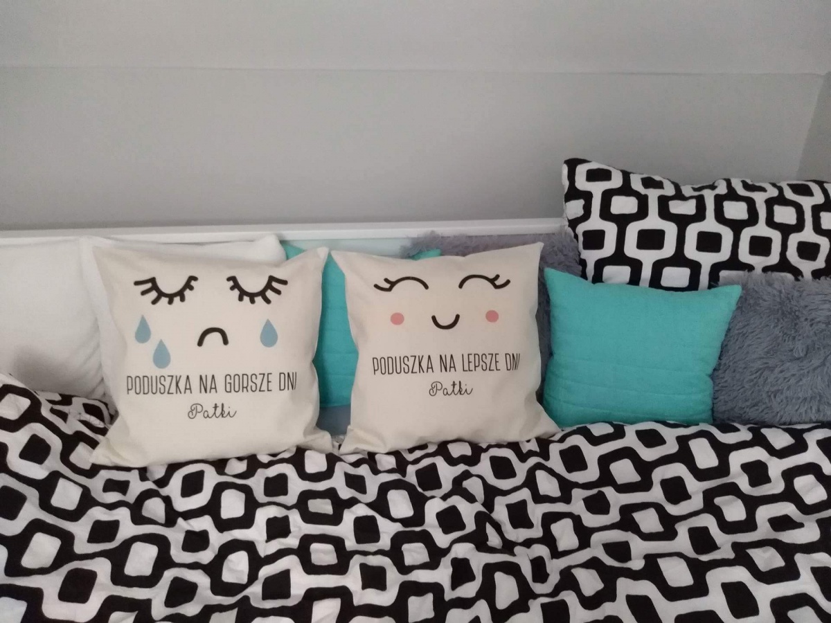 Ten pomysłowy duet poduszek z nadrukami pomoże odzwierciedlić dwa rodzaje nastrojów radosny oraz smutny. Do czego taki gadżet może się przydać? Obdarowana osoba może na przykład wykorzystać poduchy w roli sygnalizatorów humoru i ogłaszać wszem i wobec, czy ma gorszy, czy lepszy dzień. To również spore ułatwienie życia dla Ciebie teraz będzie bowiem jasne, kiedy nie męczyć partnerki czy koleżanki wywodami i nie wywoływać kłótni, a kiedy można odważniej pożartować czy próbować wyciągnąć do kina.
