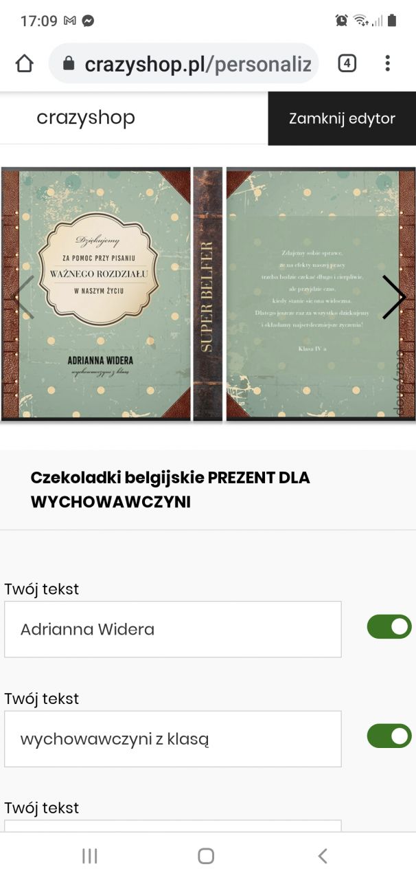 Dzień Nauczyciela lub zakończenie roku szkolnego to doskonałe momenty, aby podarować słodki upominek dla wychowawczyni. Czekoladki belgijskie to oryginalny prezent dla nauczyciela na koniec roku i nie tylko, który empatyczną postawą każdego dnia udowadnia, że jest na właściwym miejscu. Czekoladki na Dzień Nauczyciela zapakowane w pudełeczko przypominające lekturę szkolną, to prezent dla wychowawczyni, który z pewnością wywoła burze emocji. Łezka kręci się w oku na myśl o tym, jak wiele dobrego zrobił Twój nauczyciel, aby jego podopieczni pewnie stawiali kolejne kroki ku dorosłości.