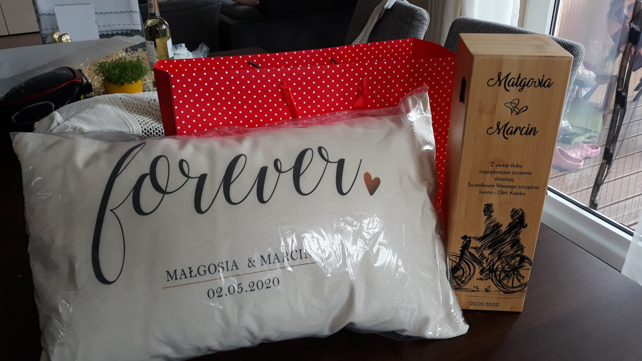 Poduszka z nadrukiem to oryginalny pomysł na prezent ślubny lub rocznicę ślubu.