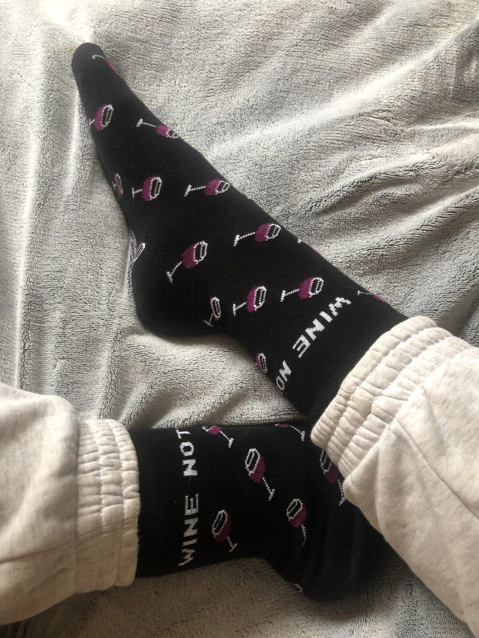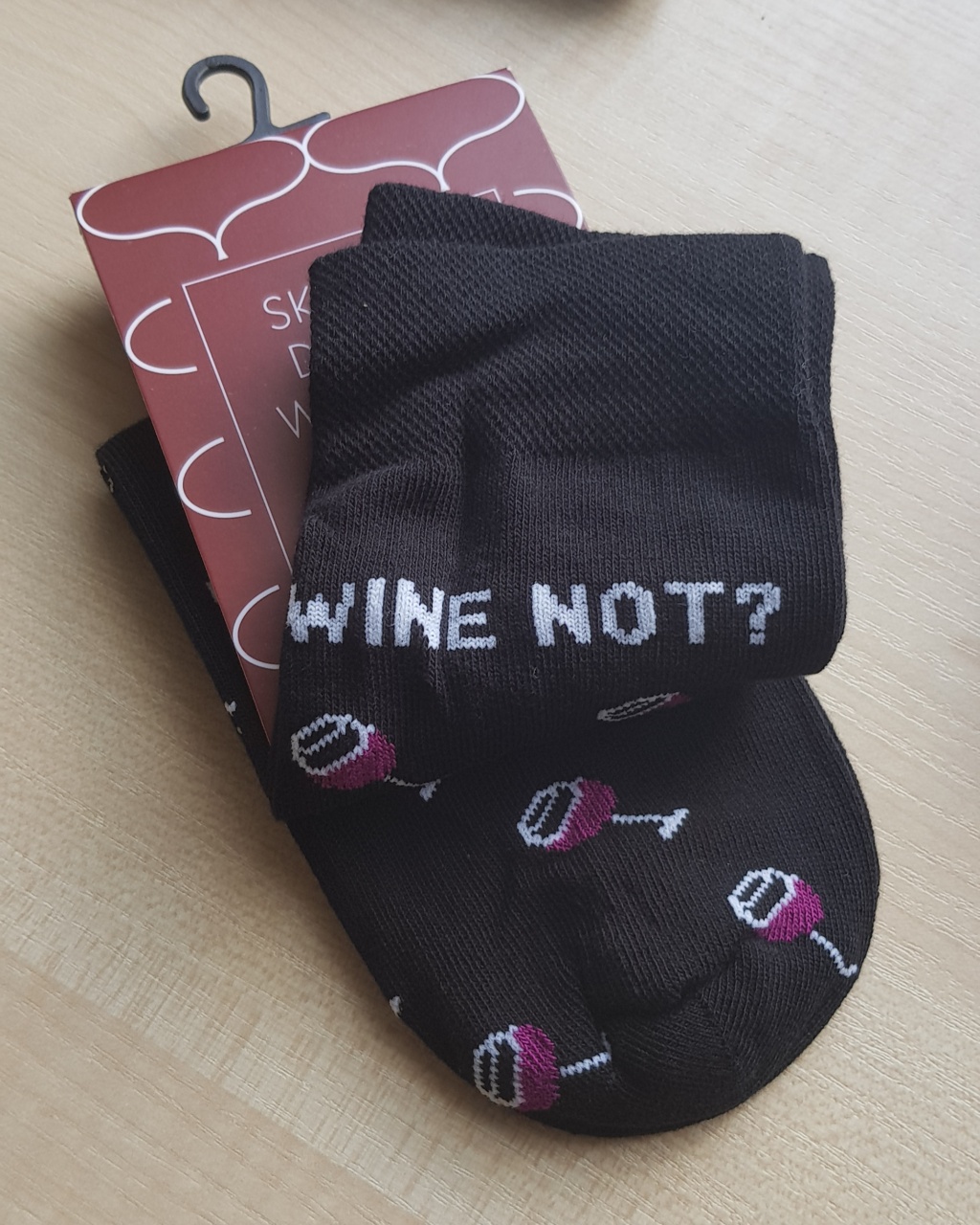 Na pytanie would you like some wine? odpowiedzieć może być tylko jedna: wine not?. Najlepiej zresztą trzymać tę odpowiedź zawsze przy sobie, a nic tak dobrze nie przenosi ważnych komunikatów jak pomysłowe skarpetki. Nasze śmieszne skarpetki damskie w wzorkiem w lampki wina mogą na przykład sygnalizować, że nosząca je osoba jest dziś w nastroju na wino. Albo że nie jest tego pewna, ale kiedy zaproponujesz lampkę - z pewnością nie odmówi butelki!
