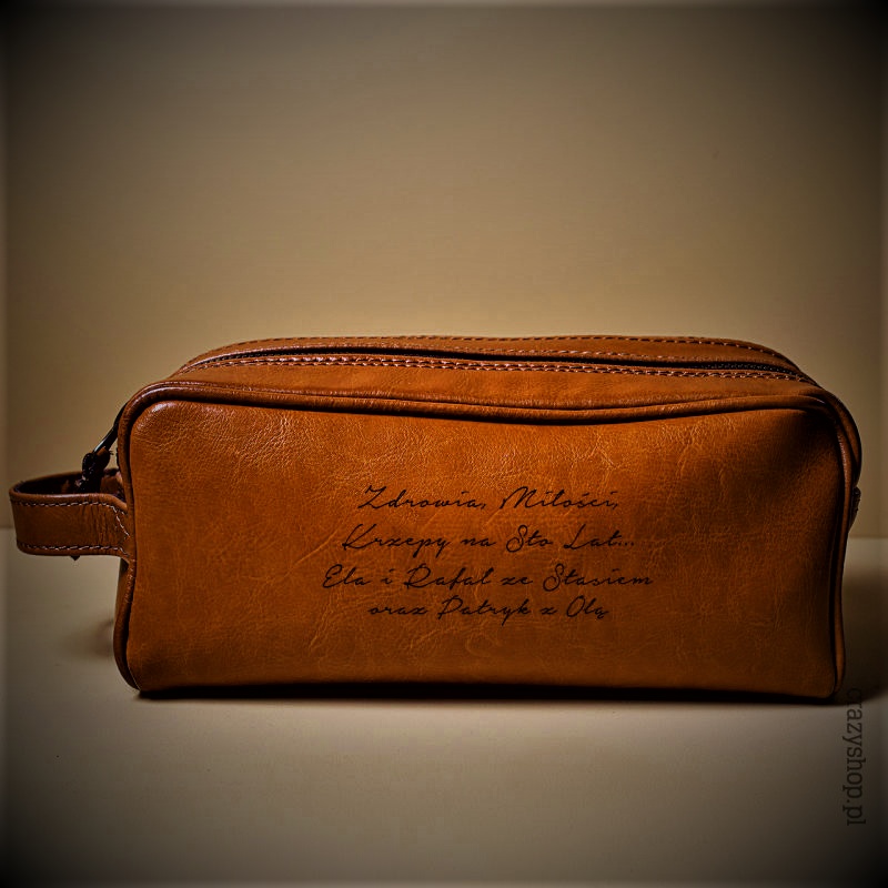 Stylowa kosmetyczka z naturalnej skóry, z oryginalnym grawerem, to doskonały pomysł na elegancki prezent dla dziadka. Obdarowany mężczyzna będzie mógł w niej trzymać ulubione kosmetyki i akcesoria. Bez wątpienia skórzana kosmetyczka przyda się zarówno w domu i w podróży. Każdy stylowy mężczyzna doceni też jej ponadczasowy i klasyczny wygląd.
