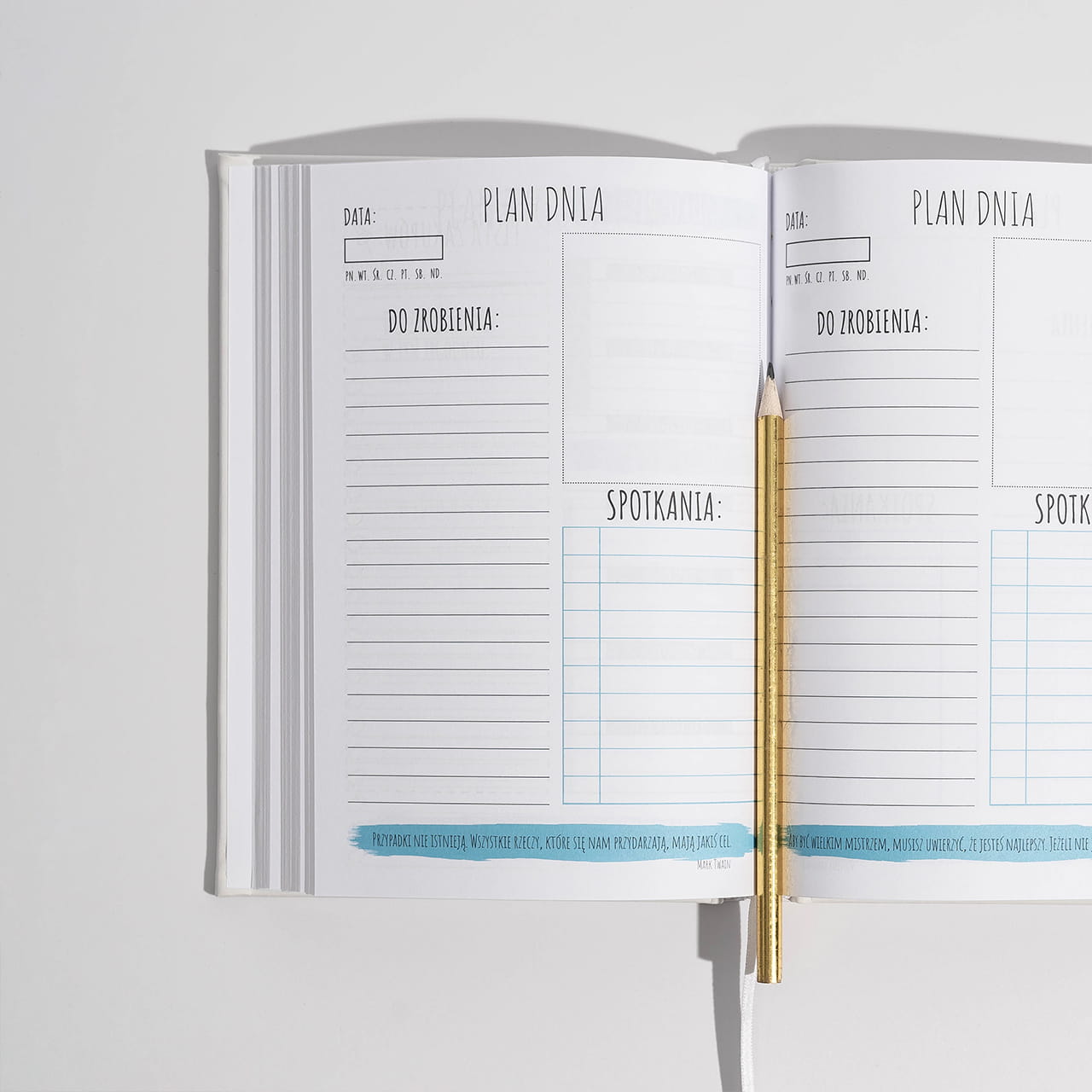 W miejscu na datę zostawiliśmy puste pola, dzięki temu to Ty decydujesz od jakiego dnia rozpoczniesz planowanie, w przeciwieństwie do zwykłego kalendarza Twój upominek staje się zatem całoroczny.