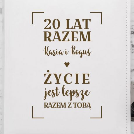 Życie razem jest lepsze - z każdą dekadą spędzoną w małżeństwie zakochani wciąż się w tym upewniają. To wspólne, szczęśliwe życie zasługuje na upamiętnienie w postaci fotografii, zaś te - na piękną oprawę. Rocznicowy album na zdjęcia z personalizacją pomoże pięknie przechować dowody na to, że razem jest lepiej.
