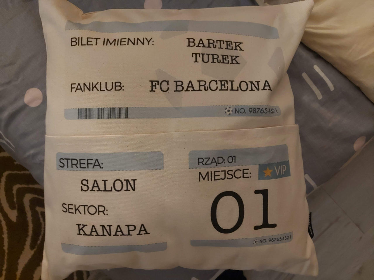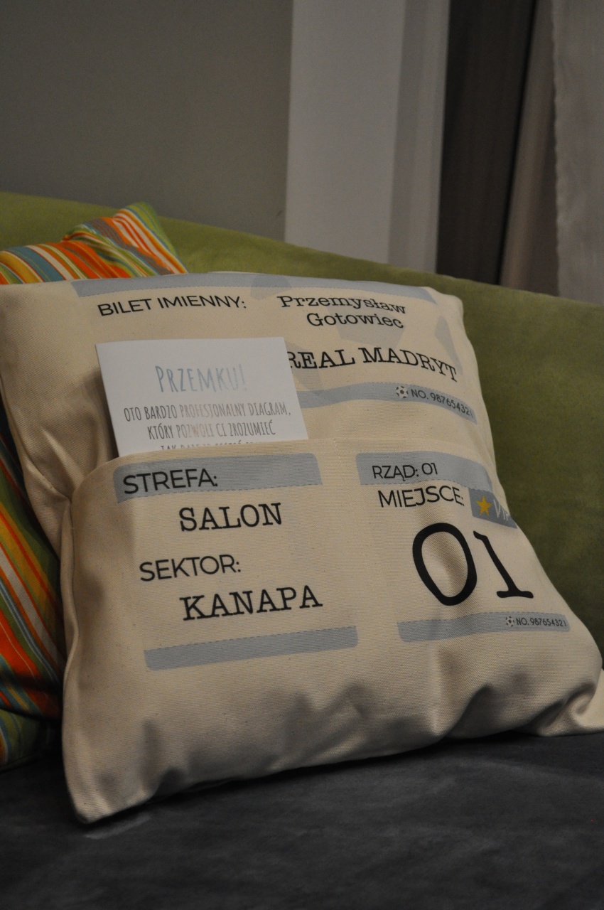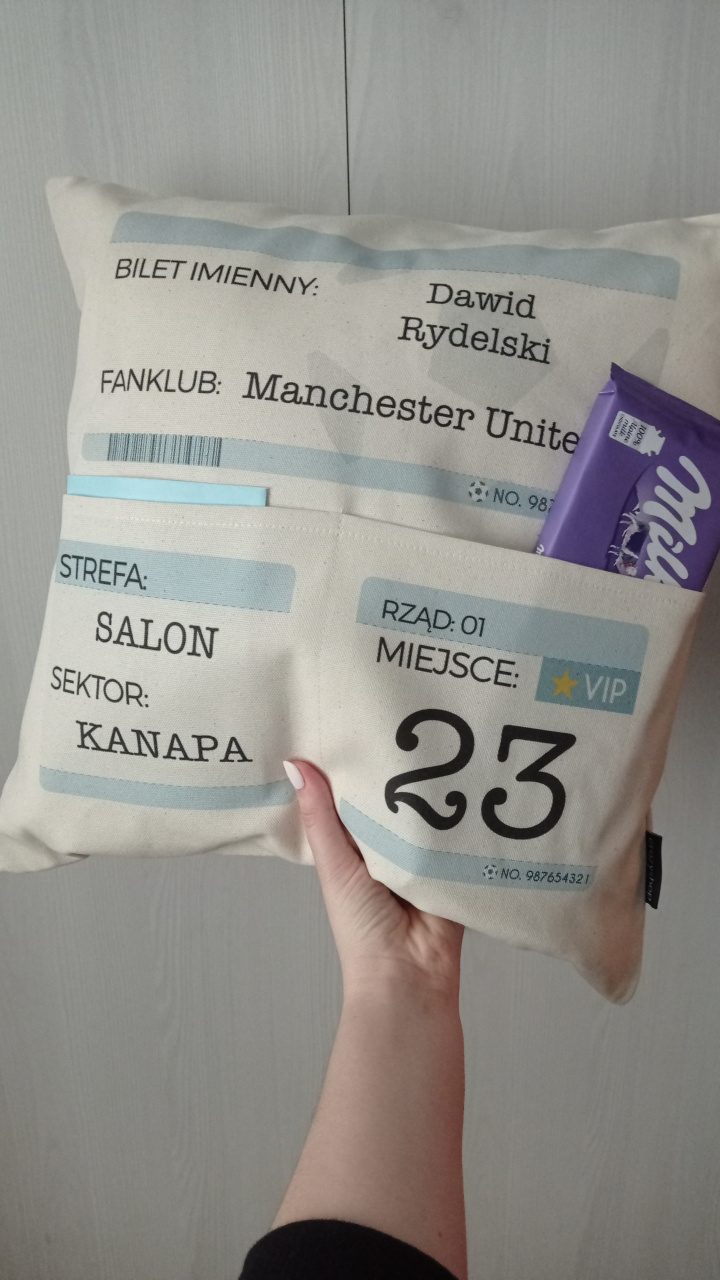 Trudno wyobrazić sobie lepszy prezent dla kibica piłki nożnej. Poduszkę z kieszeniami możesz dowolnie opisać i stworzyć z niej prawdziwy bilet na mecz ulubionego zespołu obdarowanego. Kibic posiadający taką poduszkę z kieszeniami z pewnością poczuje się jak prawdziwy VIP i nie zwolni swojego prestiżowego miejsca do końca meczu.