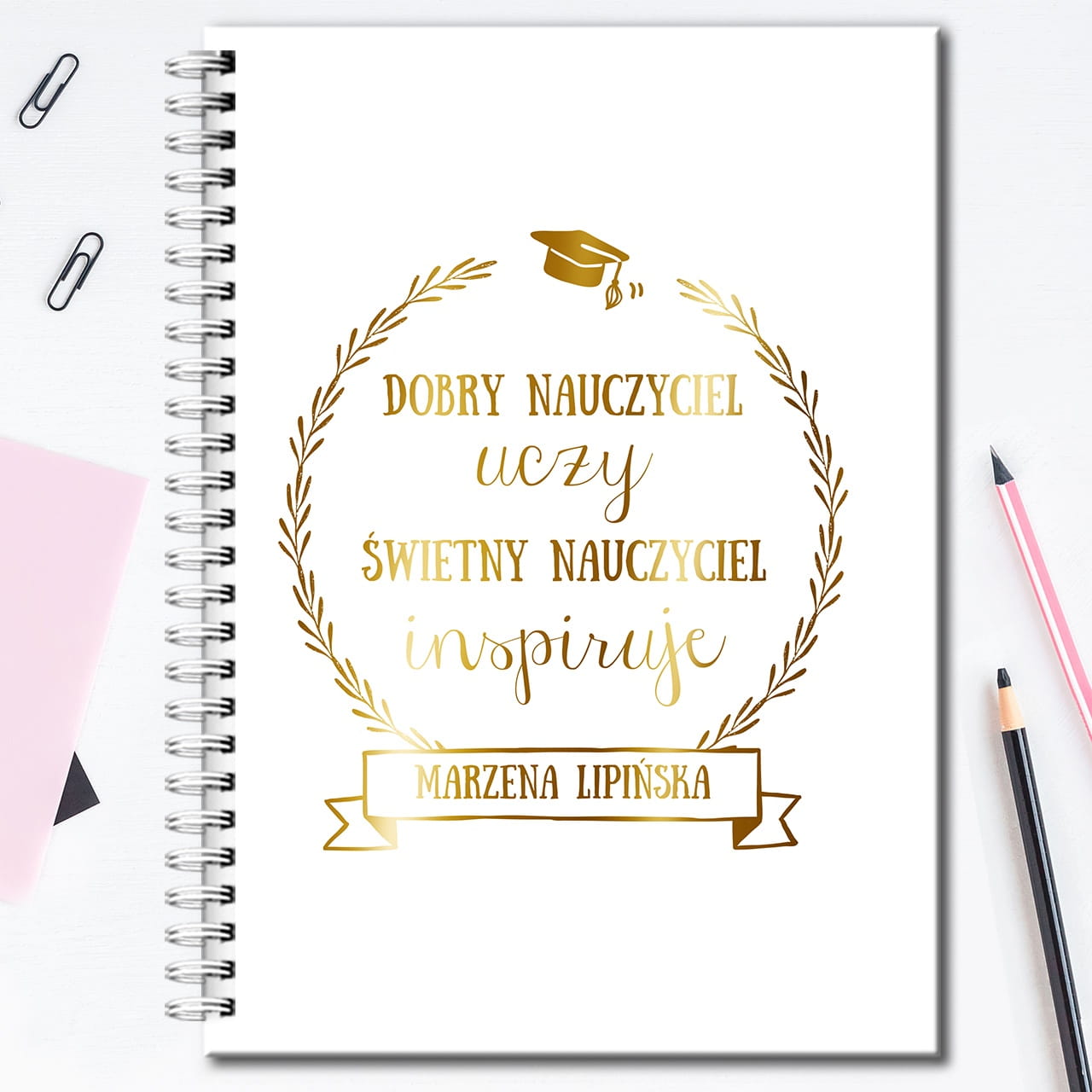 Notatnik PREZENT DLA NAUCZYCIELA złote napisy to wyjątkowy produkt stworzony z myślą o podziękowaniu dla nauczycieli. To niezwykle elegancki sposób na wyrażenie szacunku i wdzięczności wobec tych, którzy poświęcają się edukacji. Notatnik na prezent dla nauczyciela wyróżnia się nie tylko funkcjonalnością, ale także stylowym designem. Okładka notatnika zdobiona jest złotymi napisami, nadając całości wyjątkowego blasku. To subtelne, lecz efektowne detale, które nadają prezentowi wyjątkowości. Produkt ten to nie tylko estetyczny gadżet, ale także praktyczne narzędzie pracy. Notatnik posiada liczne strony, umożliwiające notowanie ważnych informacji, planowanie zajęć czy zapisywanie inspirujących myśli. Jest to zatem nie tylko elegancki, lecz także funkcjonalny prezent, który na pewno znajdzie swoje zastosowanie w codziennym życiu nauczyciela. Notatnik PREZENT DLA NAUCZYCIELA złote napisy doskonale wpisuje się w ideę podziękowania dla nauczyciela, dodając mu codziennego uroku i luksusu. To również sposób na wyrażenie uznania dla trudu i poświęcenia włożonego w rozwijanie wiedzy i umiejętności uczniów. Zamawiając ten notatnik, otrzymasz nie tylko produkt najwyższej jakości, ale także możliwość przekazania wyjątkowego prezentu, którym nauczyciel z pewnością się ucieszy. Niech Notatnik PREZENT DLA NAUCZYCIELA złote napisy stanie się symbolem wdzięczności, dodając niepowtarzalnego blasku w codziennym życiu tego wyjątkowego człowieka.