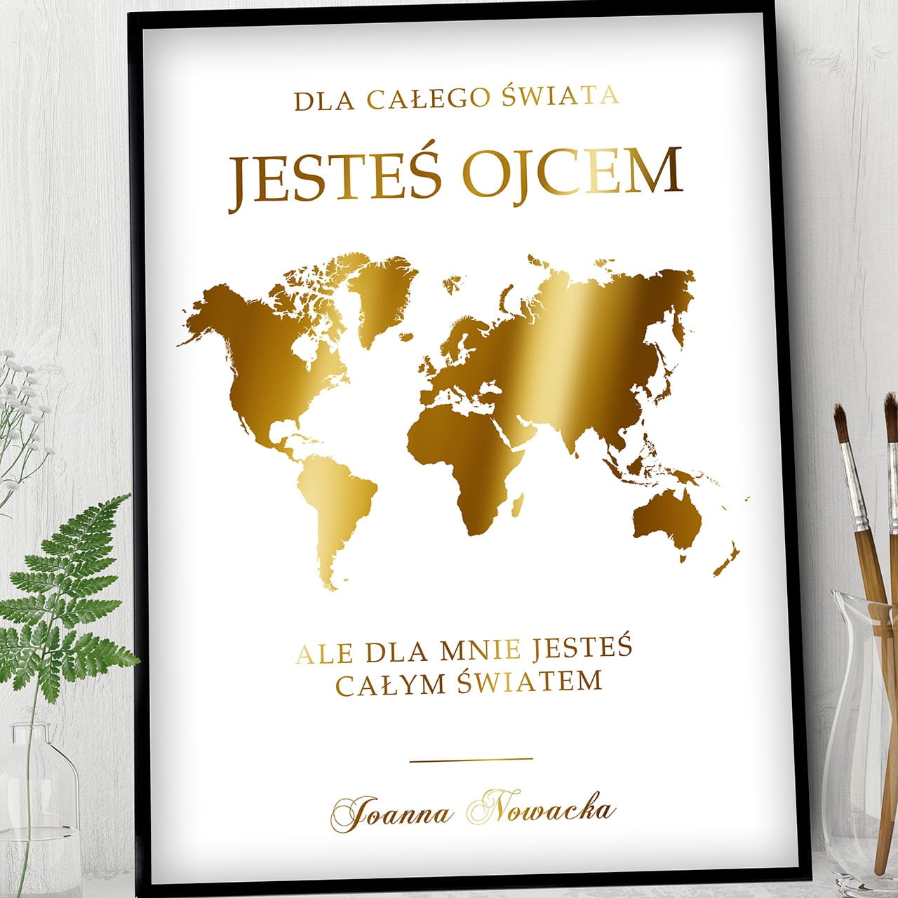 Plakat z uszlachetnieniem złoty to nasza propozycja na stylowy PREZENT DLA OJCA na różne okazje.