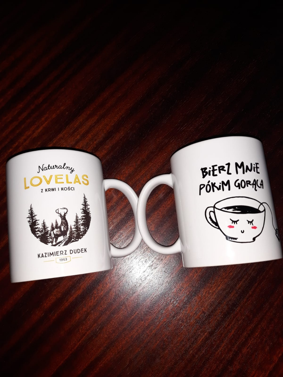 Kubek z nadrukiem LOVELAS to oryginalny pomysł na prezent na Dzień Chłopaka.