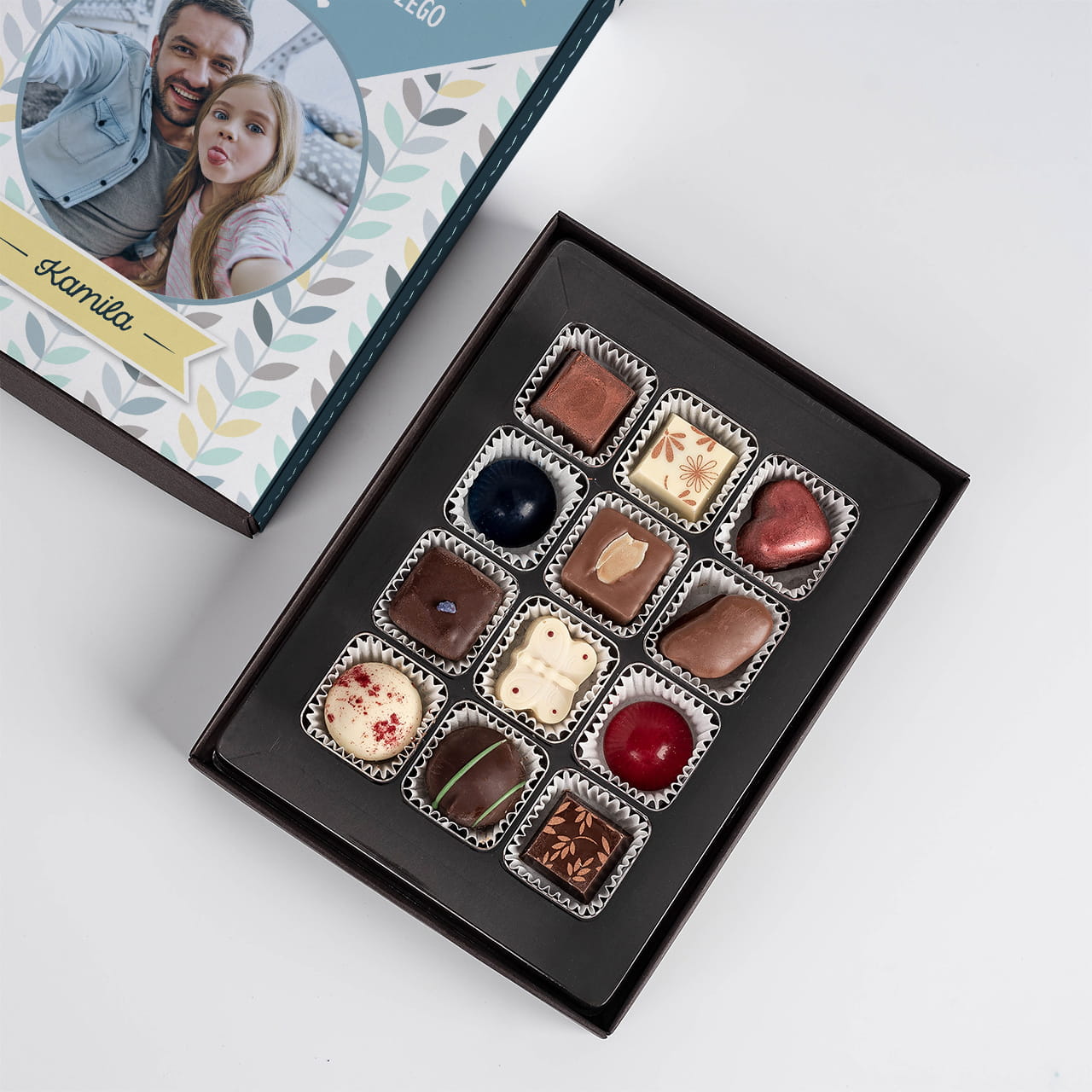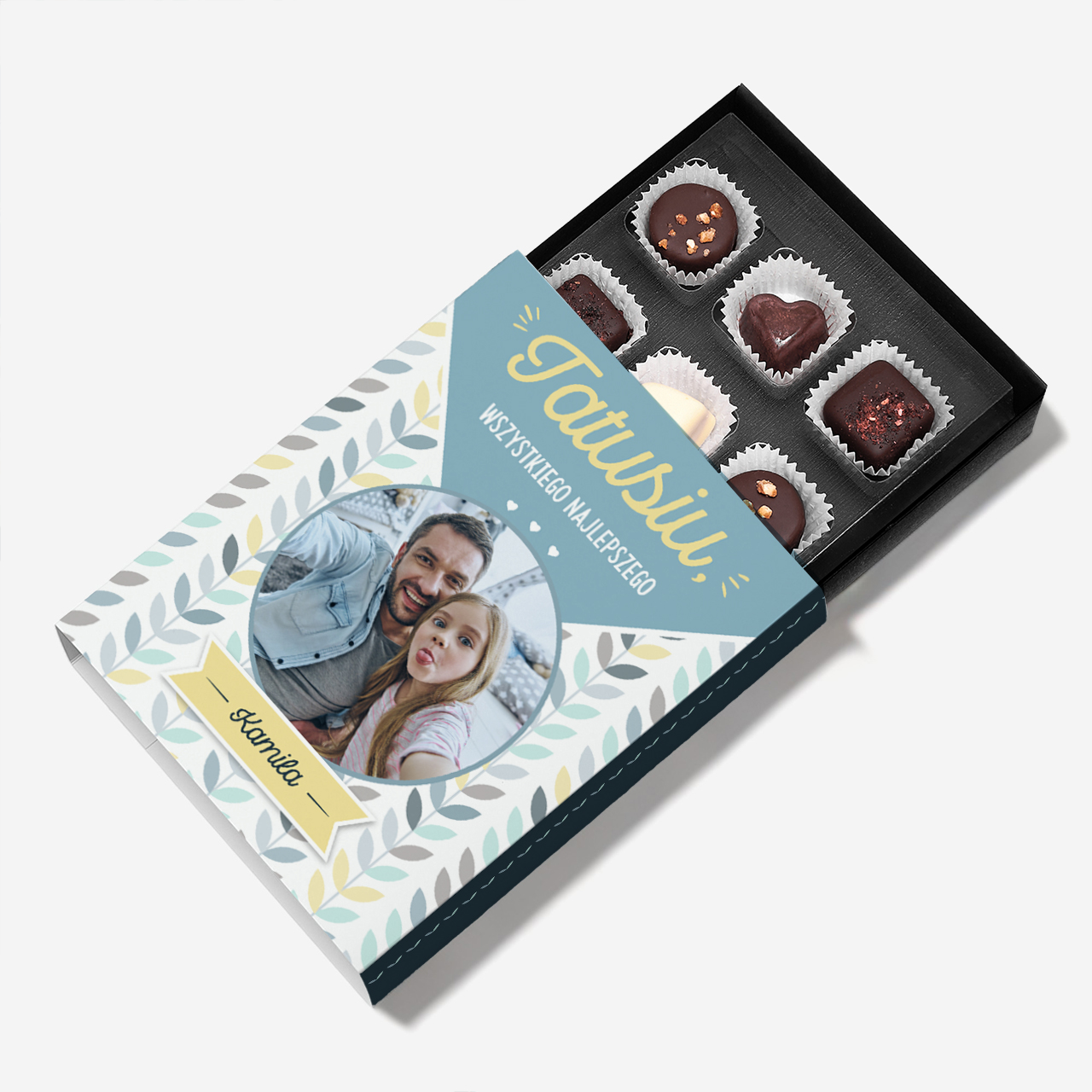 Praliny z belgijskiej czekolady ze słodką dedykacją i zdjęciem, to oryginalny pomysł na prezent na Dzień Ojca od dziecka - tego młodszego jak i nieco starszego.