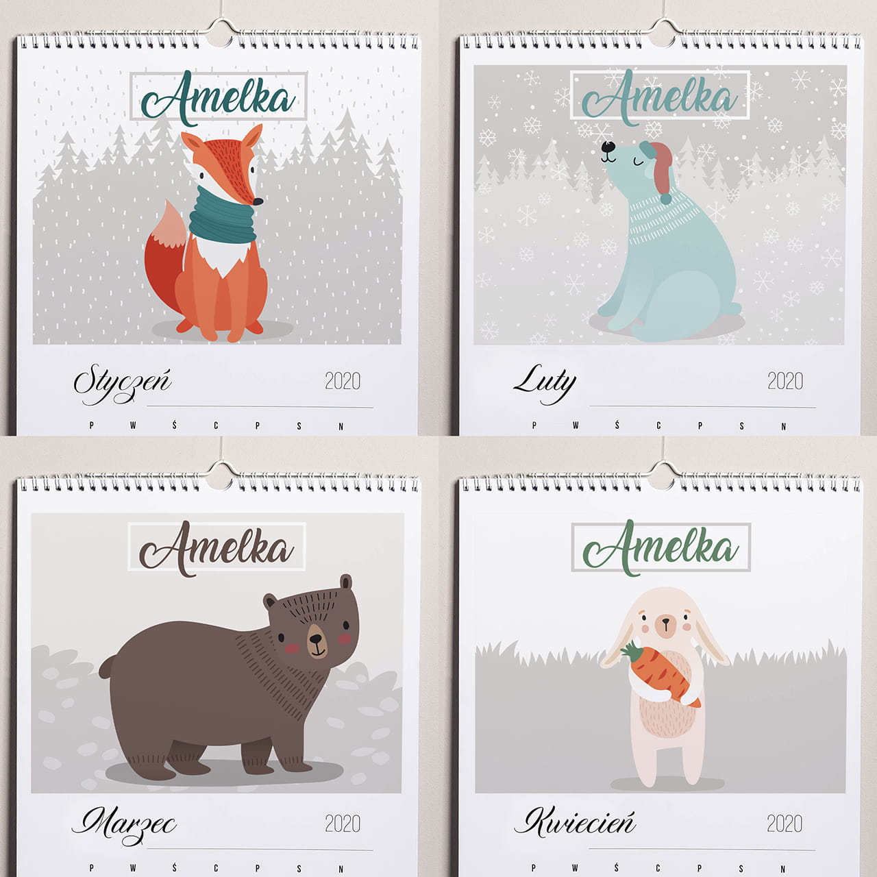 Wybierz styl pisma i umieść imię swojej pociechy, a MIESZKAŃCY LASU będą czuwać nad szczęściem Twojej małej istotki każdego miesiąca. Kalendarz posiada zawieszkę do powieszenia na ścianie, jest wykonany z papieru o bardzo dobrej jakości, przyjemnego w dotyku. Każda zwierzęca postać jest niezwykle barwna i wzbudzająca sympatię u swojego małego właściciela.