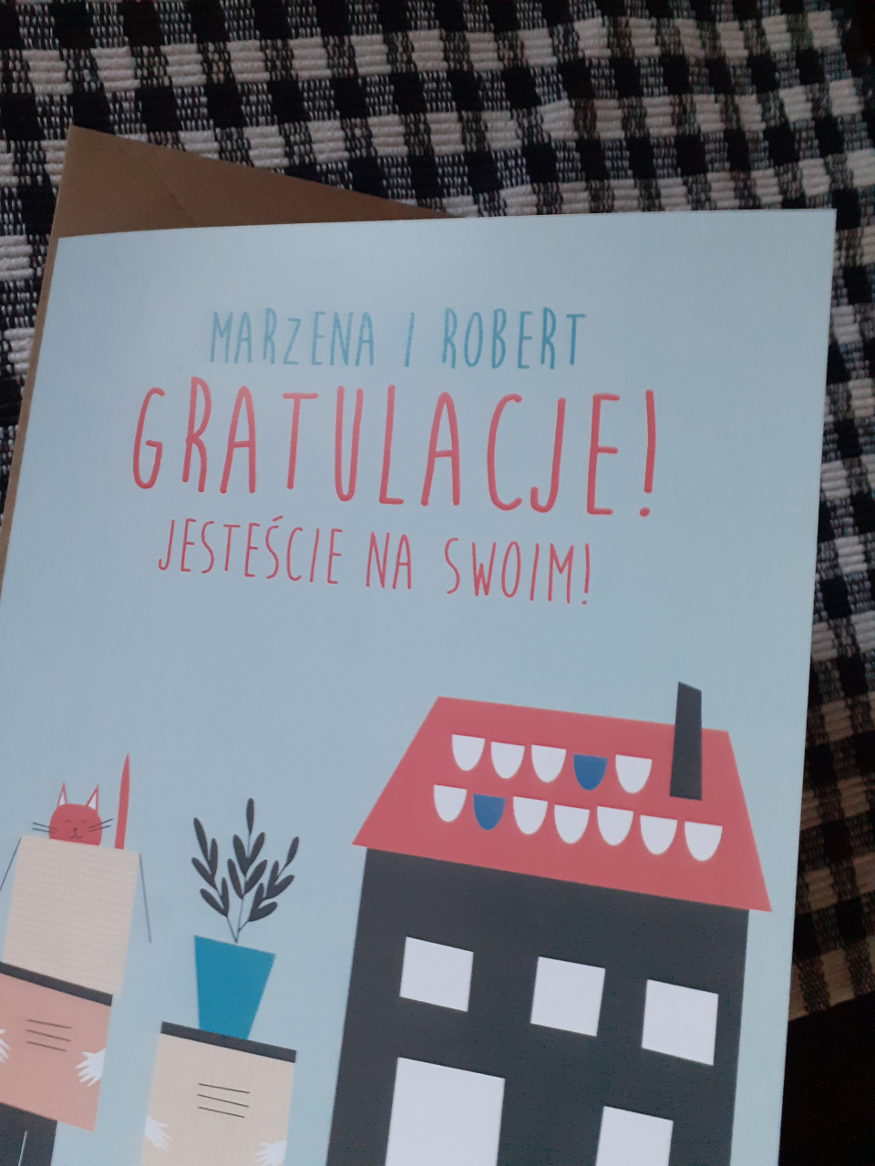Kartka NA SWOIM to obowiązkowy dodatek do prezentu na parapetówkę.