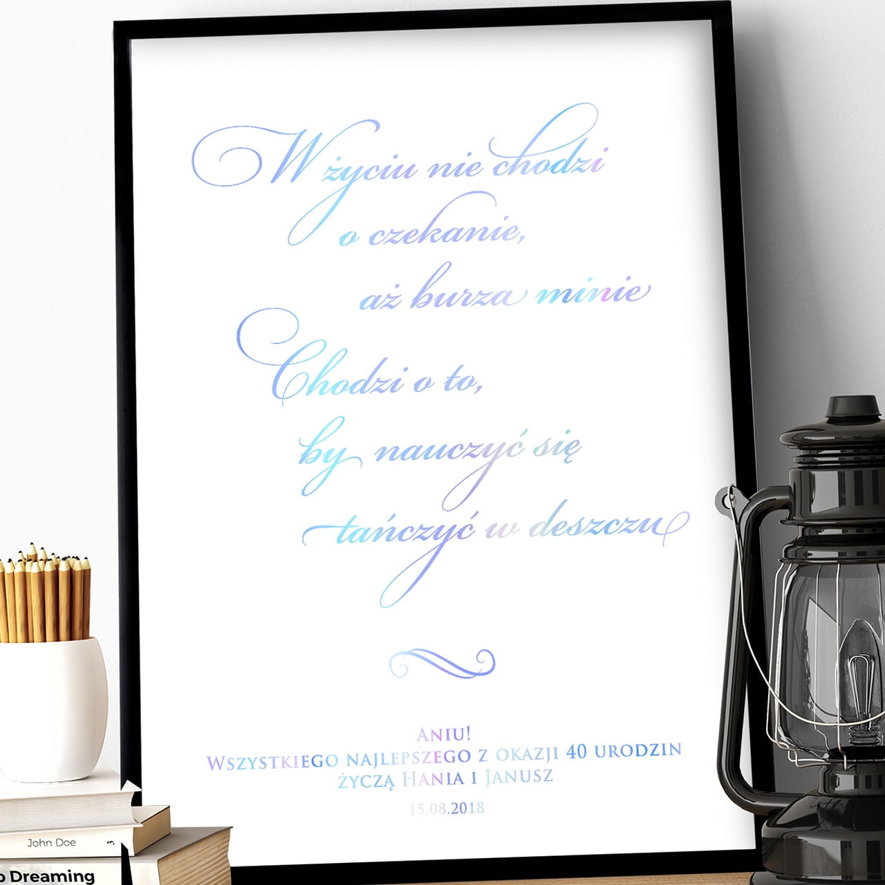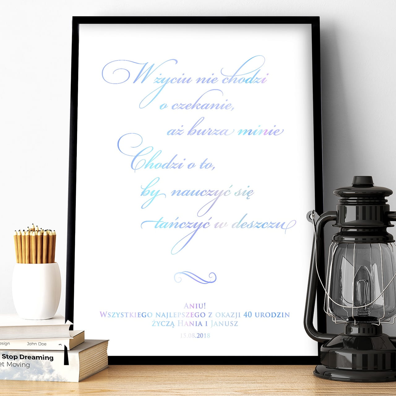 Poster z pięknie mieniącym napisem, będzie nie tylko świetną dekoracją domu, ale także sporą dawką motywacji każdego dnia. Idealnie sprawdzi się jako prezent urodzinowy dla bliskiej osoby.