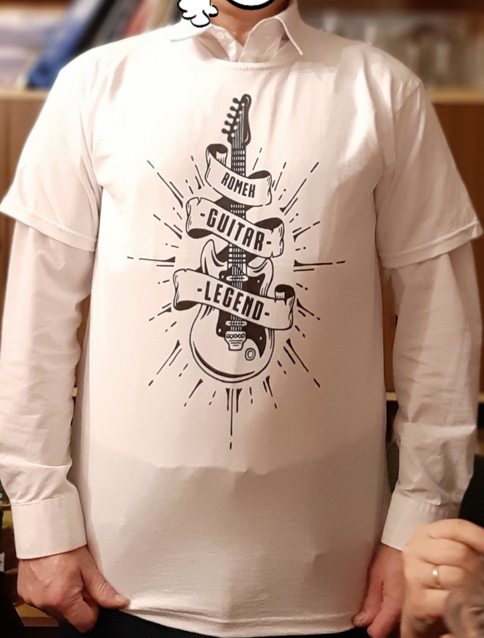 Obdarowany ucieszony, od razu przymierzył i chwycił za gitarę 🙂. Rozmiar się zgadza.
