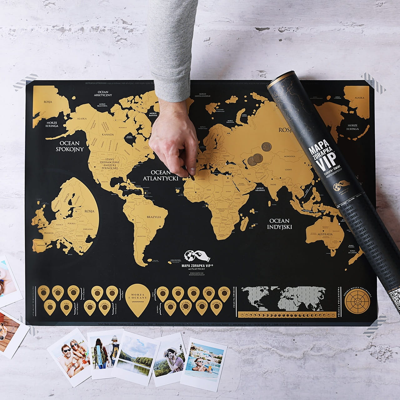 Kiedyś świat wydawał się wielki, podróżowanie było bardzo trudne i niebezpieczne. Dzisiaj wszystkie destynacje stoją przed nami otworem, a bycie podróżnikiem to prawdziwa przyjemność. Mapa zdrapka VIP to wspaniały pomysł na prezent dla podróżników - siostry, brata, przyjaciółki, przyjaciela. Wreszcie będzie mógł zaznaczać kolejne państwa i kontynenty, a kto wie, może nawet kiedyś zdrapie całą mapę?