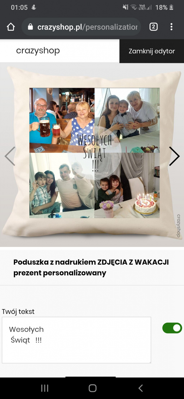 Zamówiłam poduszkę personalizowaną ze zdjęciami na dzień chłopaka. Poduszka super wykonana i ekspresowo wysłana! Bardzo polecam.