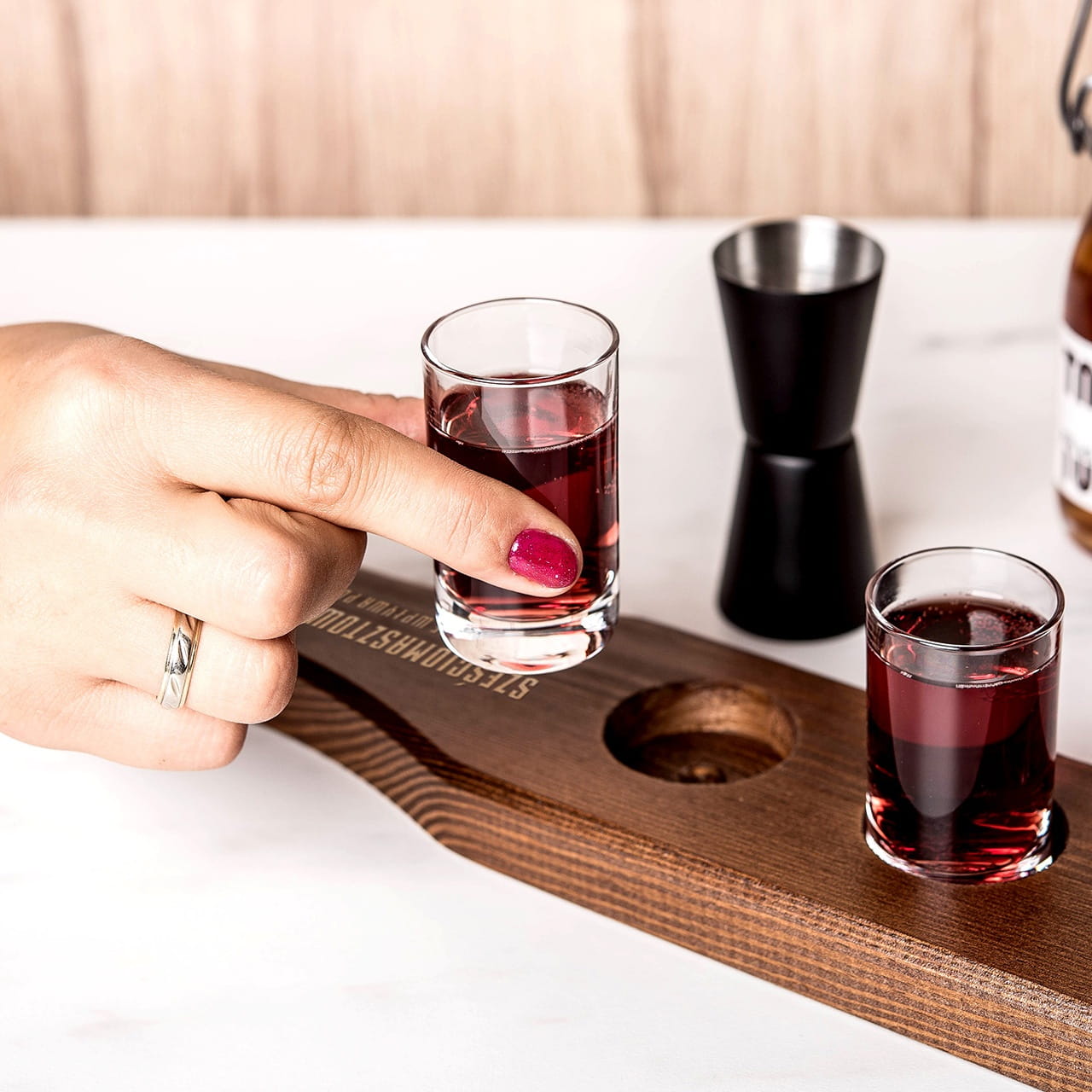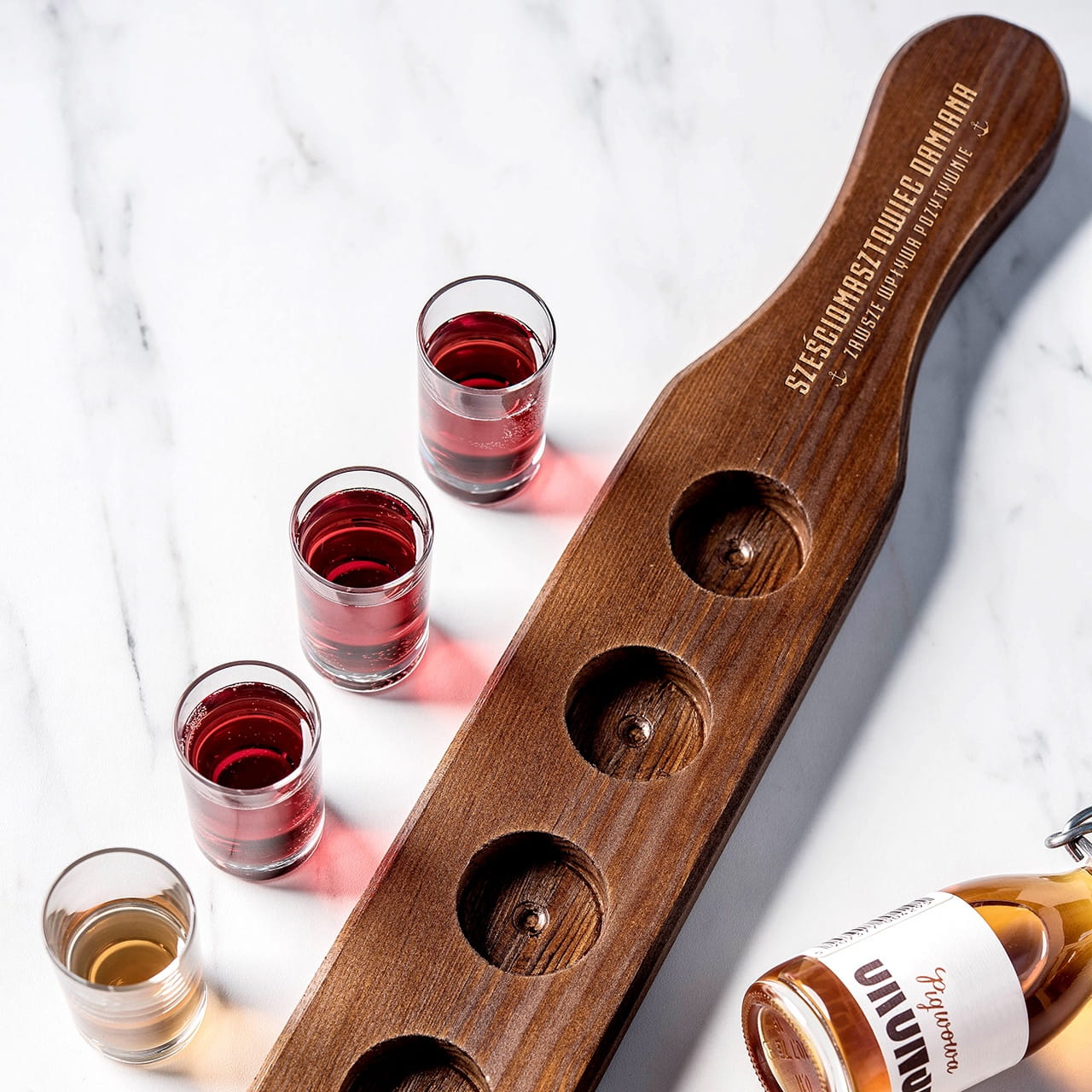 Deska do shotów z kieliszkami to sprawdzony prezent dla żeglarza i ciekawy podarunek na wieczór kawalerski.