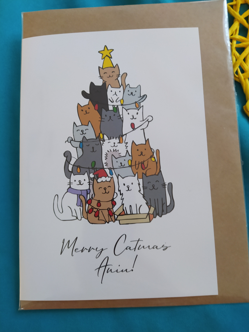 Personalizowana kartka ŚWIĄTECZNE KOTKI to uroczy dodatek do prezentu dla kociary na święta.