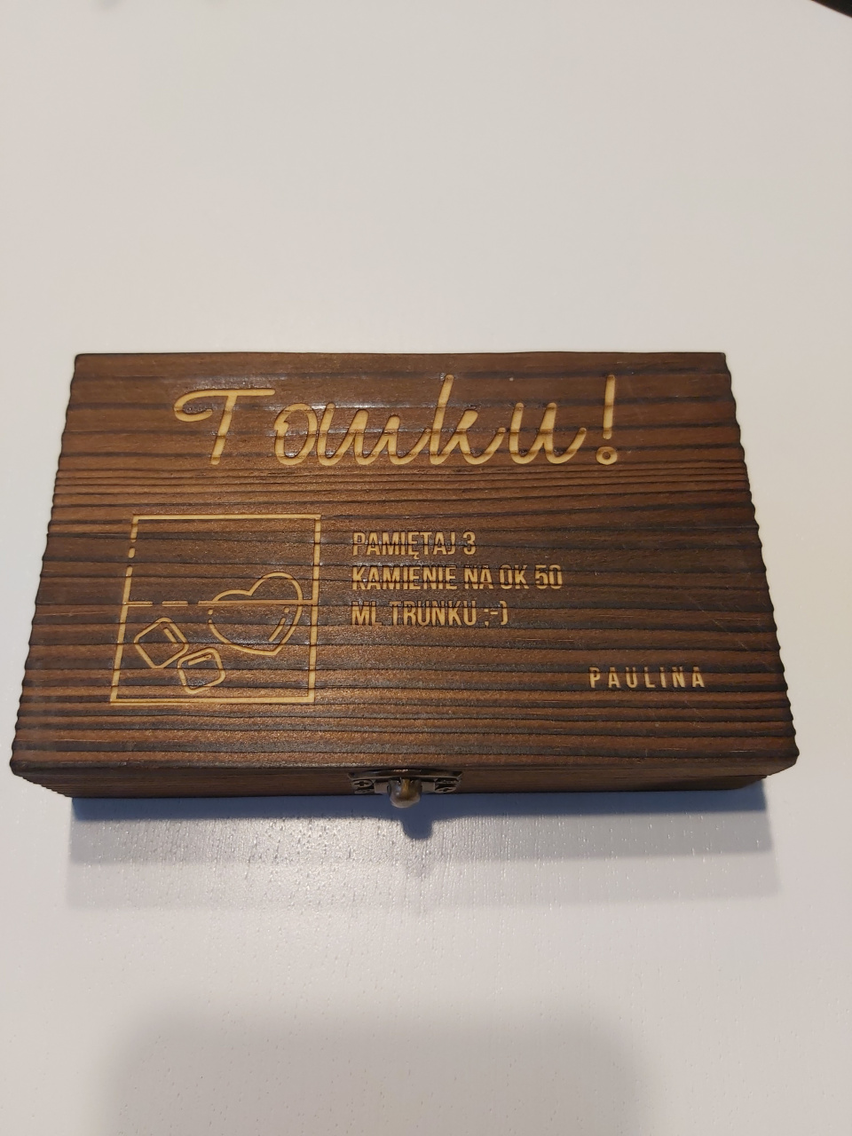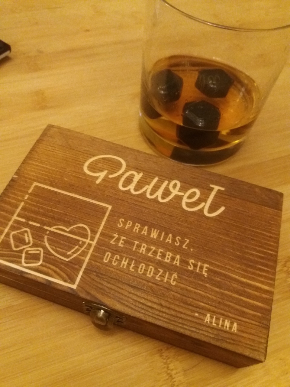 Kamienie do whisky w personalizowanym drewnianym pudełku to Bardzo fajny pomysł na prezent - TRAFIONY! POLECAM dla smakoszy whisky, będzie świetnym dodatkiem do gustownej degustacji.