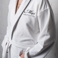 Szlafrok jest świetnym pomysłem na prezent dla męża. Możesz dodać na nim imię swojego wybranka, a stworzysz romantyczny podarunek i elegancką pamiątkę. Mąż z pewnością będzie dumnie nosił swój nowy nabytek i zabierał go nawet na najdalsze firmowe wyjazdy.