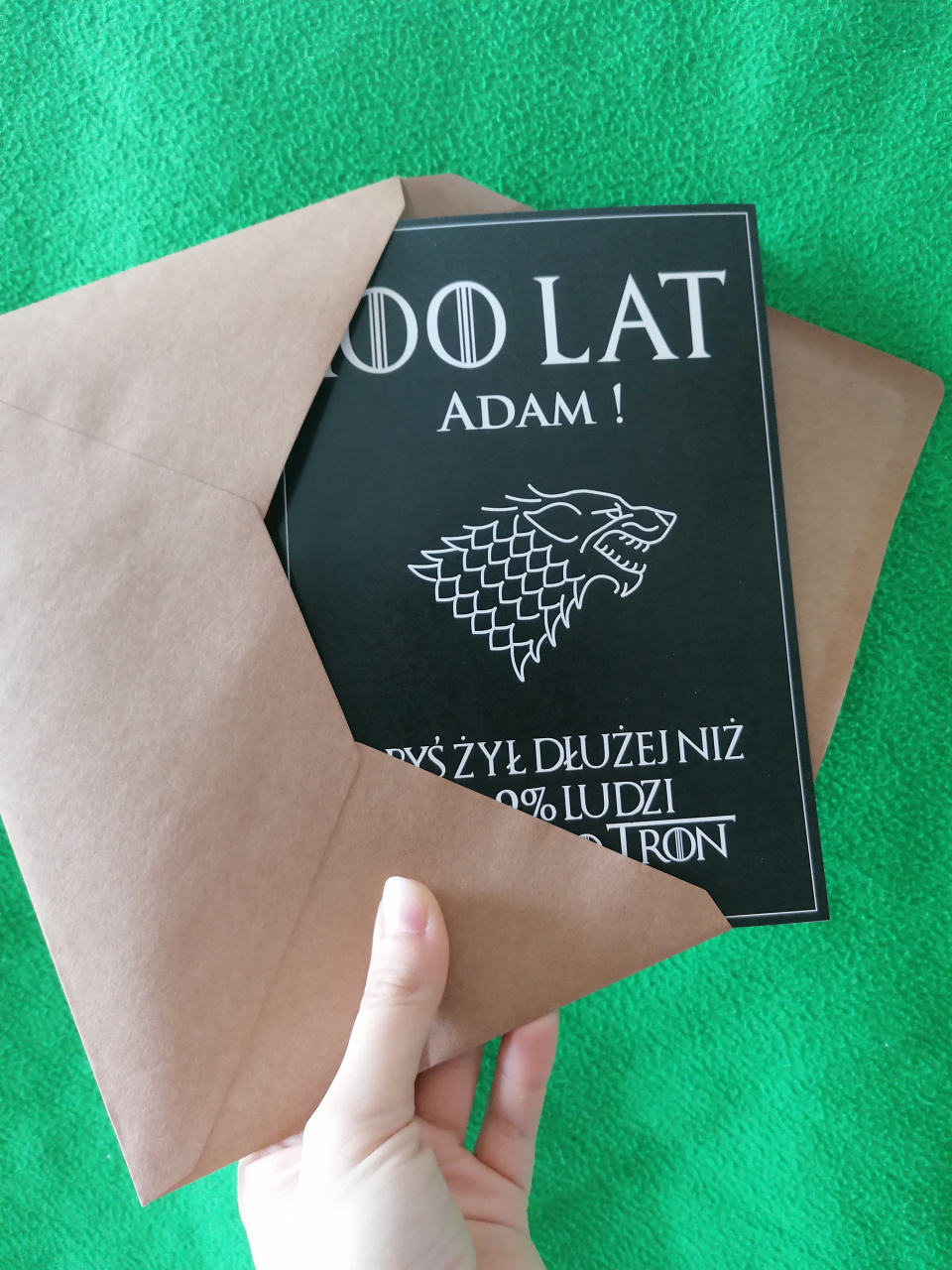 Dedykowana kartka to oryginalny pomysł na dodatek do prezentu urodzinowego dla fana Gry o Tron.