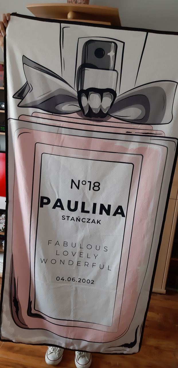 Co prawda każdy wiek jest magiczny, ale są daty w życiu człowieka, które szczególnie zapadają w pamięć. W związku z tym wymagają również pięknej oprawy i należytej celebracji. Stając na wysokości zadania, stworzyliśmy upominek dla młodej kobiety, która z wielkim przytupem wkracza w piękny wiek pełnoletności. Personalizowany ręcznik kąpielowy z imieniem FLAKON idealnie sprawdzi się na prezent na urodziny dla dziewczyny. Co sprawia, że jest tak wyjątkowy? Ten produkt jest zestawieniem wszystkich cech i potrzeb prawdziwej kobiety. Piękno dla oczu, przyjemność dla skóry i prawdziwa uczta dla duszy. Perfumy w rozmiarze maxi, róż, kilka słodkich komplementów oraz uwiecznienie tego niezwykłego wydarzenia drukowaną na ręczniku datą urodzin. Wszystko to (i o wiele więcej) bliska twemu sercu osoba otrzyma tego pamiętnego dnia.