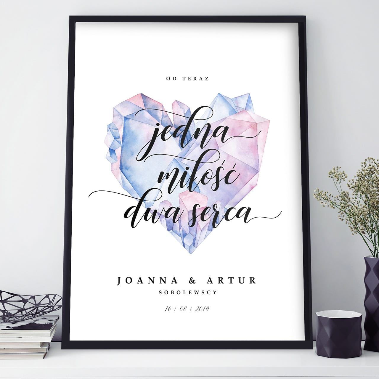 Jedna miłość dwa serca to słowa, które idealnie wpasują się w klimat weselnej uroczystości. Taki prezent dla pary młodej na długo pozostanie w pamięci nowożeńców i wszystkich gości. Dodatkowo prezentowany upominek wyróżnia subtelność, delikatna forma i nienaganny styl, który idealnie wpasuje się w wystrój wnętrza salonu, czy też sypialni każdego domu.