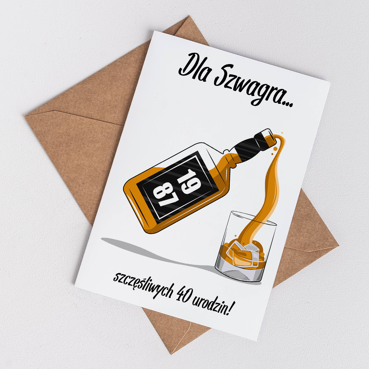 Pierwsza strona kartki urodzinowej z alkoholem oraz jej wnętrze dają ci szereg możliwości, dzięki którym nadasz kartce niezwykle osobistego charakteru. Możliwość umieszczenia własnego tekstu, anegdotki czy cytatu oraz prywatnego zdjęcia gwarantują niezapomnianą pamiątkę dla bliskiej osoby. Być może pójdziesz w kierunku bardziej poważnym, wzruszającym, a być może postawisz na humor i totalnie śmieszne życzenia urodzinowe dla szwagra. Wszystko zależy od Ciebie. Z naszą pomocą stworzysz prezent, który na długo pozostanie w pamięci całej rodziny.