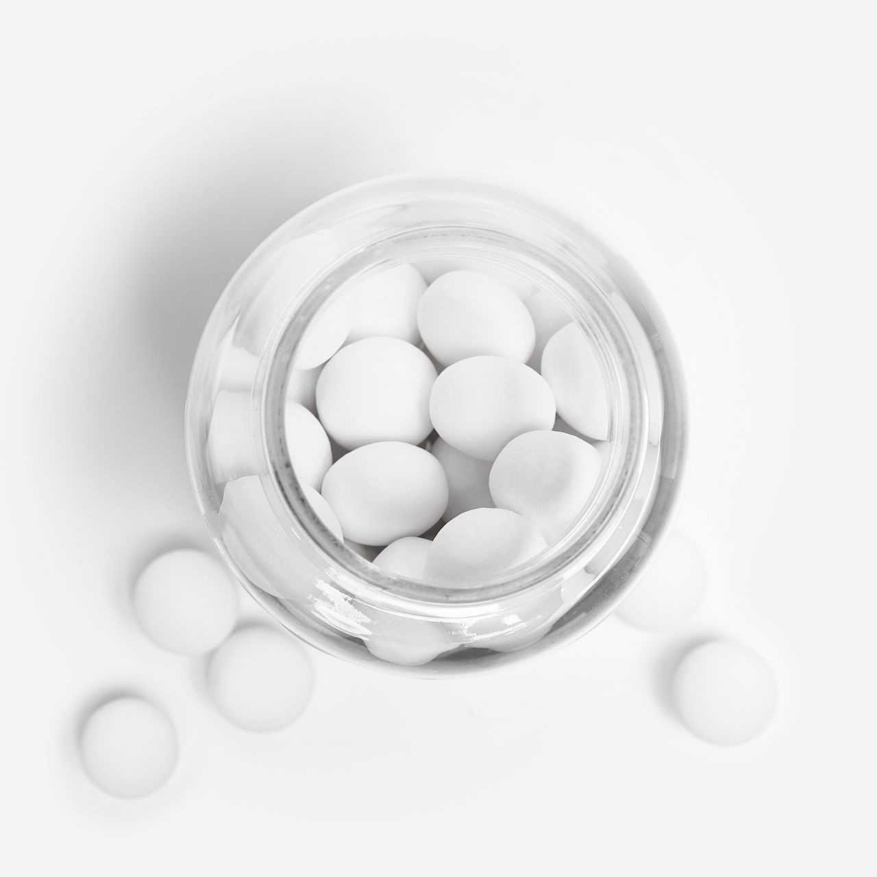 Składniki: cukier, stabilizator: guma arabska, olejek miętowy
