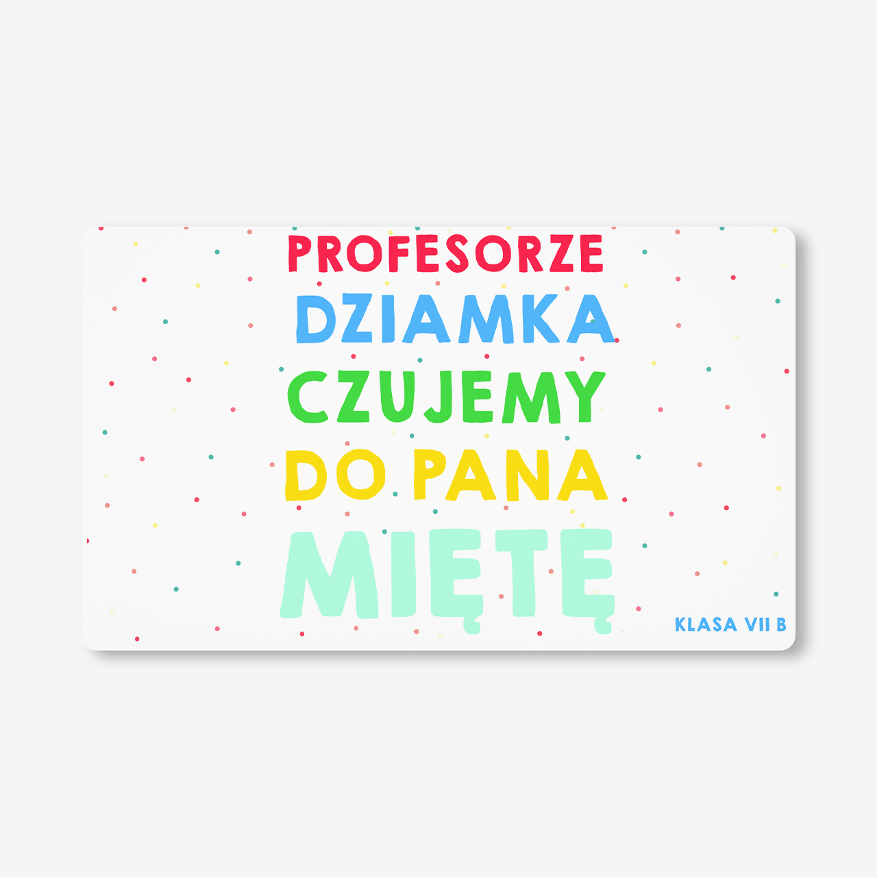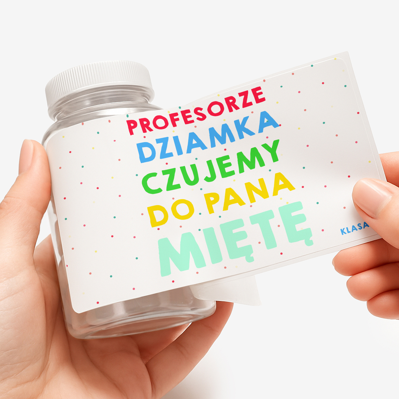 Zastanawiasz się, jak w oryginalny sposób podziękować nauczycielowi lub wychowawcy? Ten produkt to świetne połączenie humoru, koloru i osobistego przekazu, które od razu przyciąga uwagę. Radosna grafika i możliwość personalizacji sprawiają, że upominek nabiera wyjątkowego charakteru i wyróżnia się na tle klasycznych prezentów. Jeśli chcesz podarować coś z pomysłem, Opakowanie na cukierki z etykietą personalizowaną CZUJEMY MIĘTĘ będzie idealnym wyborem.