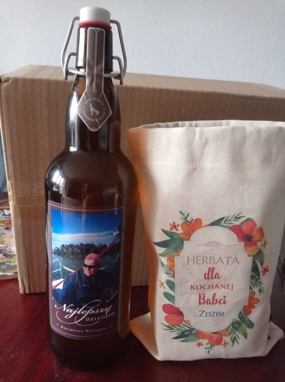 Na Dzień Dziadka, urodziny i odwiedziny ukochanego seniora. Piwo dla dziadka z personalizowaną etykietą możesz bez problemów dostosować do własnych potrzeb. Wybierz ulubione zdjęcie solenizanta lub Waszą wspólną fotografię i zaprojektuj pamiątkową butelkę, która będzie prawdziwą ozdobą salonu lub jadalni. Szykujesz wystrzałowy prezent dla dziadka? Litrowy napój alkoholowy w ozdobnej butelce ze zdjęciem to fajny pomysł na uzupełnienie upominkowego zestawu o osobisty akcent.