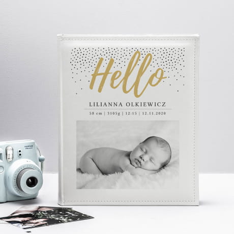 Elegancki album personalizowany dla dziecka to urokliwy środek i stylowa oprawa. To właśnie osobisty projekt okładki czyni prezentowany album dla noworodka tak wyjątkowym. Teraz tylko musisz zdobyć najpiękniejszą fotografię maleństwa i umieścić ją na śnieżnobiałej oprawie. Zaprojektuj pełną sentymentów księgę wspomnień.