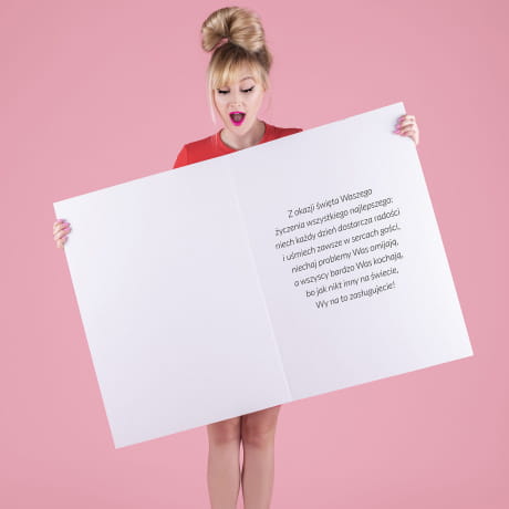 Kartka dla rodziców to podarunek, który łączy tradycję z oryginalnością. Zapewniamy, że nasz produkt będzie znakomitym pomysłem na prezent dla rodziców na rocznicę ślubu, którym z dumą chwalić się będą przed wszystkimi. Ponadto możesz spersonalizować kartkę umieszczając na niej wymyślony przez siebie tekst oraz życzenia w środku.