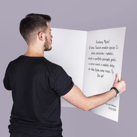 Zbliżają się urodziny twojego męża i chcesz go zaskoczyć? Zależy ci na tym, by prezent był wyjątkowy, ale jednocześnie nie możesz odmówić sobie odrobiny żartu i delikatnej uszczypliwości? Doskonale to rozumiemy. Dlatego też naszą propozycją jest kartka urodzinowa dla męża, której śmieszna grafika nawiązuje do sytuacji spotykanych w wielu związkach małżeńskich. Jej wyjątkowość polega na dość niecodziennych, dużych rozmiarach. To życzenia, które na pewno zrobią wrażenie.
