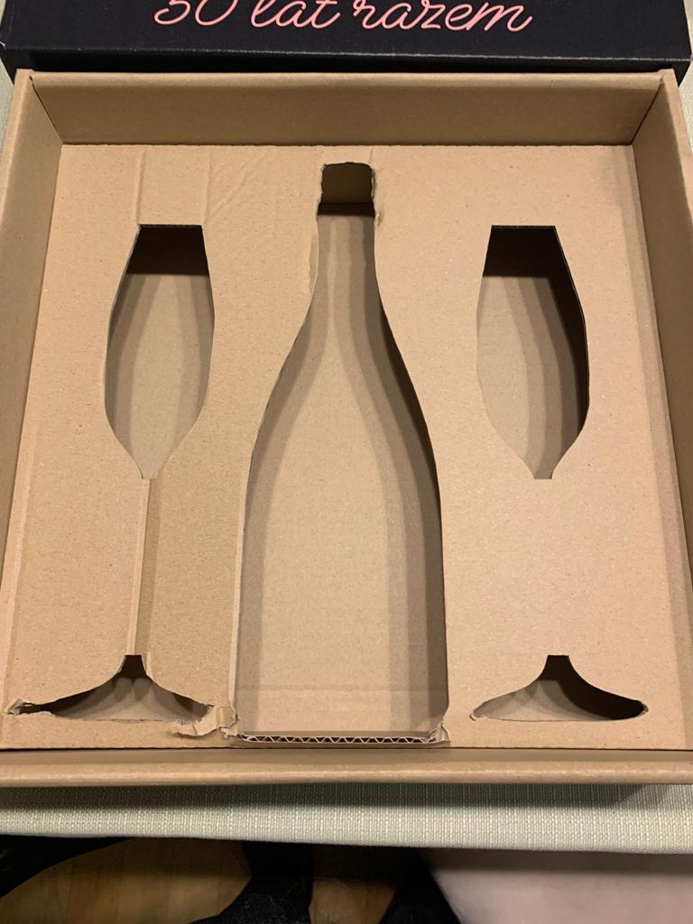Pudełko wygląda ładnie,jednak ten karton w środku co ma trzymać alkohol i kieliszki nie jest za bardzo stabilny przez co zawartość moze wypasc