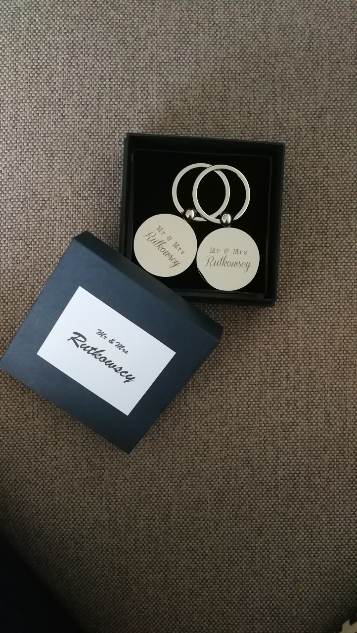 Rekomendujemy wybór grawerowanego breloka do kluczy na upominek dla nowożeńców.